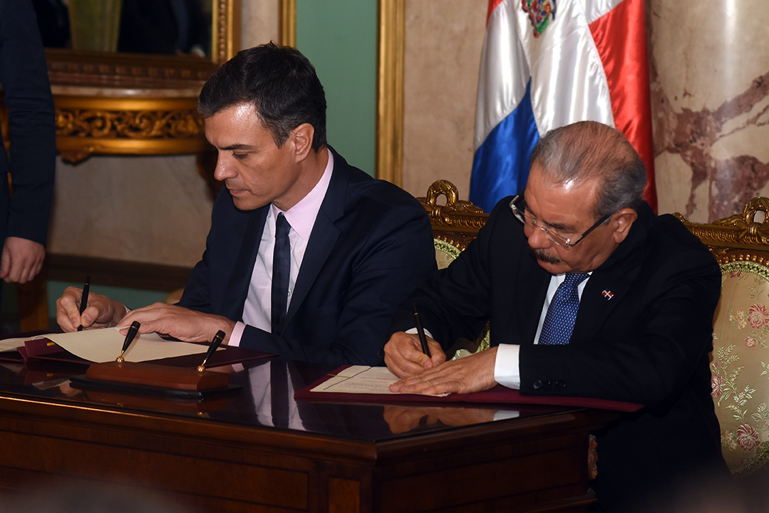 El marco fue firmado por el presidente dominicano, Danilo Medina y el mandatario español, Pedro Sánchez de visita oficial en República Dominicana, durante un acto en