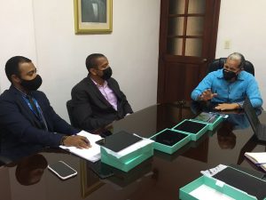 Santo Domingo, República Dominicana (Junio 2021).- El viceministro de Ordenamiento Territorial y Desarrollo Regional, del Ministerio de Economía, Planificación y Desarrollo, Domingo Matías, recibió en su despacho al director de Desarrollo de Proyecto del Ministerio de Agricultura, Luis Ceballos, para conocer la plataforma digital que permitirá automatizar datos sobre la producción agrícola.