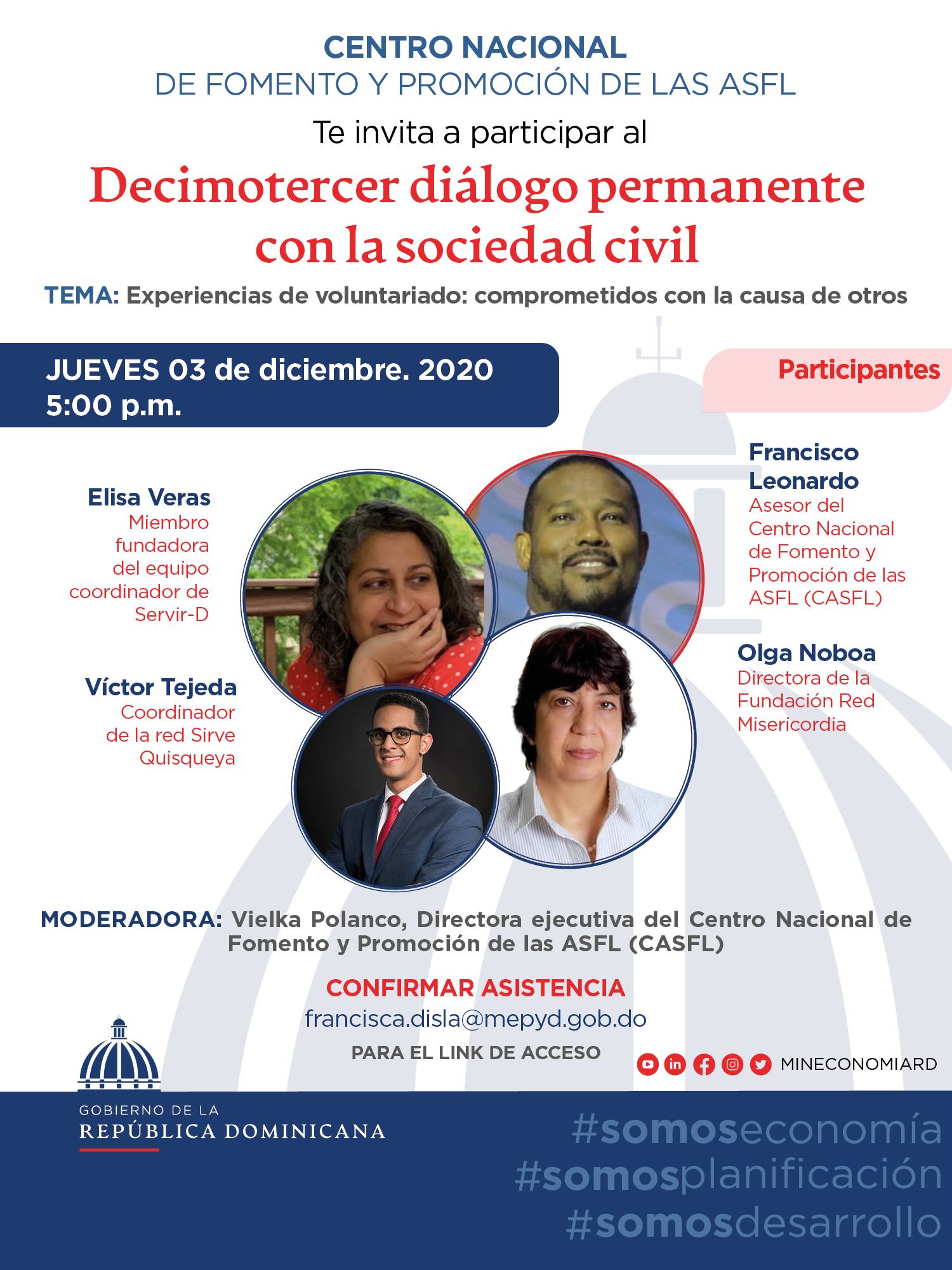 Para confirmación de asistencia y adquirir enlace de acceso, favor escribir a la siguiente dirección electrónica: francisca.disla@mepyd.gob.do