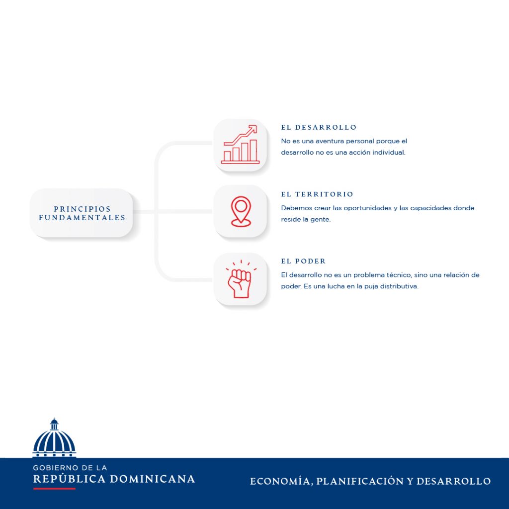 El Ministerio de Economía, Planificación y Desarrollo se moviliza, día tras día, en tres pilares o principios fundamentales: desarrollo, territorio y poder; los cuales están vinculados en siete ejes transversales: equidad de género, territorialidad, participación ciudadana, sostenibilidad, transparencia y rendición de cuentas, grupos vulnerables y transformación digital. El ministro Miguel Ceara-Hatton articula estos principios y los ejes en su primer discurso a todos los colaboradores y colaboradoras que integran la institución rectora del Sistema Nacional de Planificación e Inversión Pública y del ordenamiento y ordenación del territorio, de esta manera se concretan políticas para desarrollar el programa de gobierno que denominamos «Una propuesta de cambio».