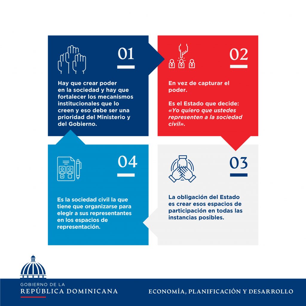 Eso nos lleva a cuatro áreas de intervención: primero, hay que crear poder en la sociedad y hay que fortalecer los mecanismos institucionales que crean poder en la sociedad y eso debe ser una prioridad del Ministerio y del Gobierno.