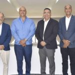 Al centro, el viceministro de Ordenamiento Territorial y Desarrollo Regional, Domingo Matías. De izquierda a derecha, el subdirector del COE, Julián García; gerente general de Riesgo PMA, Melanie Benoit; director Instituto Sismológico, Ramón Delanoy; director ONESVIE, Leonardo Reyes Madera; la directora de gestión de Obras Públicas, Martha Souffront; la directora Planificación y Desarrollo de Autoridad Portuaria, Giselle Collado Marte; el subdirector de Agricultura, Juan Mancebo; el director SINI, Rubén Frontal; la consultora de FLACESO, Lourdes Meireles, y el subdirector del COE, Carlos Paulino.