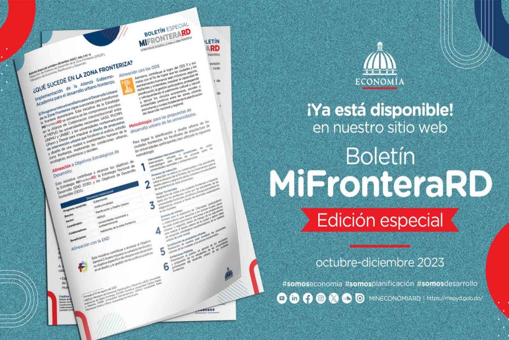El boletín destaca los avances en el desarrollo urbano de la frontera. En ese aspecto, resalta las propuestas realizadas en 2022 de los diseños urbanos de Pepillo Salcedo, Jimaní y Pedernales expuestas en la exhibición “tres CIUDADES: Una mirada al desarrollo urbano de la zona fronteriza” que fue presentada al público en general en estas ciudades fronterizas.