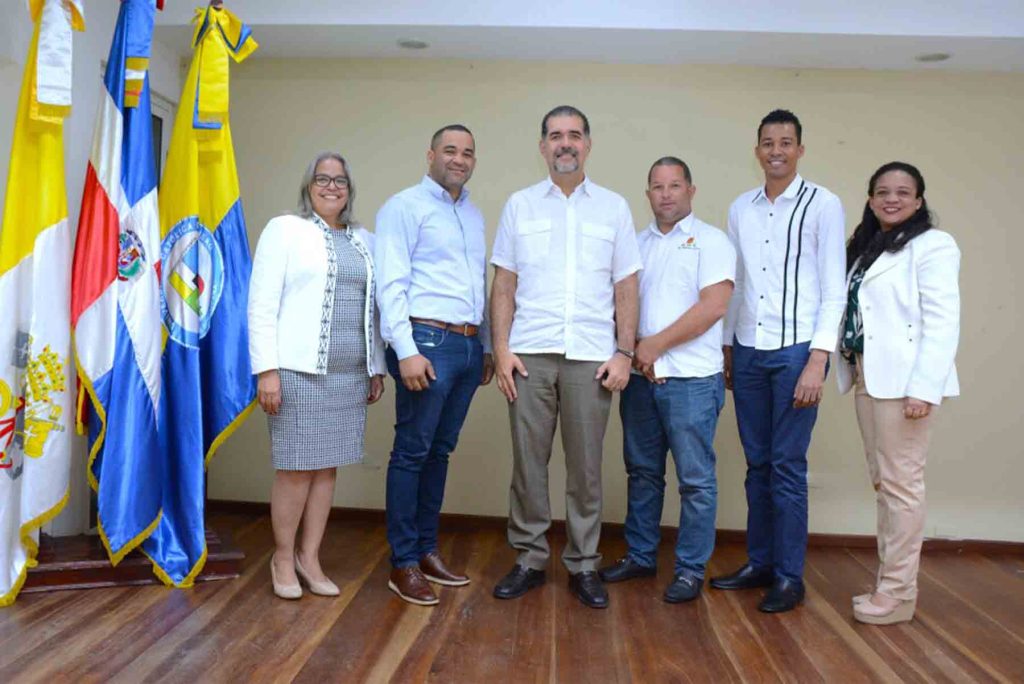 De izquierda a derecha, Maritza Estrella, directora de la Escuela de Arquitectura de UCATECI; José Manuel Reyes, secretario general del Ayuntamiento del Pino, Dajabón; Erick Dorrejo, director de Políticas de Desarrollo de la Zona Fronteriza del Ministerio de Economía, Planificación y Desarrollo; Geraldo Diaz, encargado de Planeamiento Urbano del Ayuntamiento de Partido, Dajabón; Luis Miguel Pérez, regidor Ayuntamiento El Pino, y Sobeida Evangelista, directora de la Escuela de Ingeniería de UCATECI.