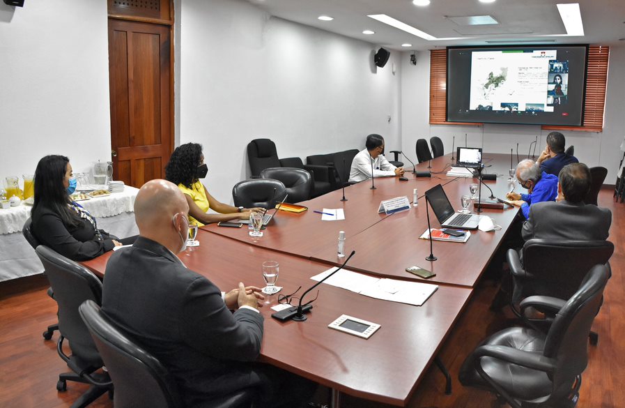El viceministro de Planificación, Pavel Isa Contreras, encabezó la teleconferencia con los especialistas albaneses junto a los directores de Inversión Pública, Martín Francos y el director de Planificación y Desarrollo Fronterizo, Erick Dorrejo. Presentes también las especialistas sectoriales, Izalia López y Kirsis Roa.