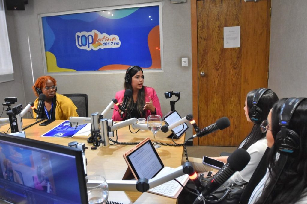 La encargada del Fortalecimiento Institucional del Centro Nacional de Fomento y Promoción de las Asociaciones Sin Fines de Lucro (CASFL), Alicia Medrano, ofrece detalles del galardón durante su participación en el programa radial No Se Diga Más por Top Latina 101.7FM