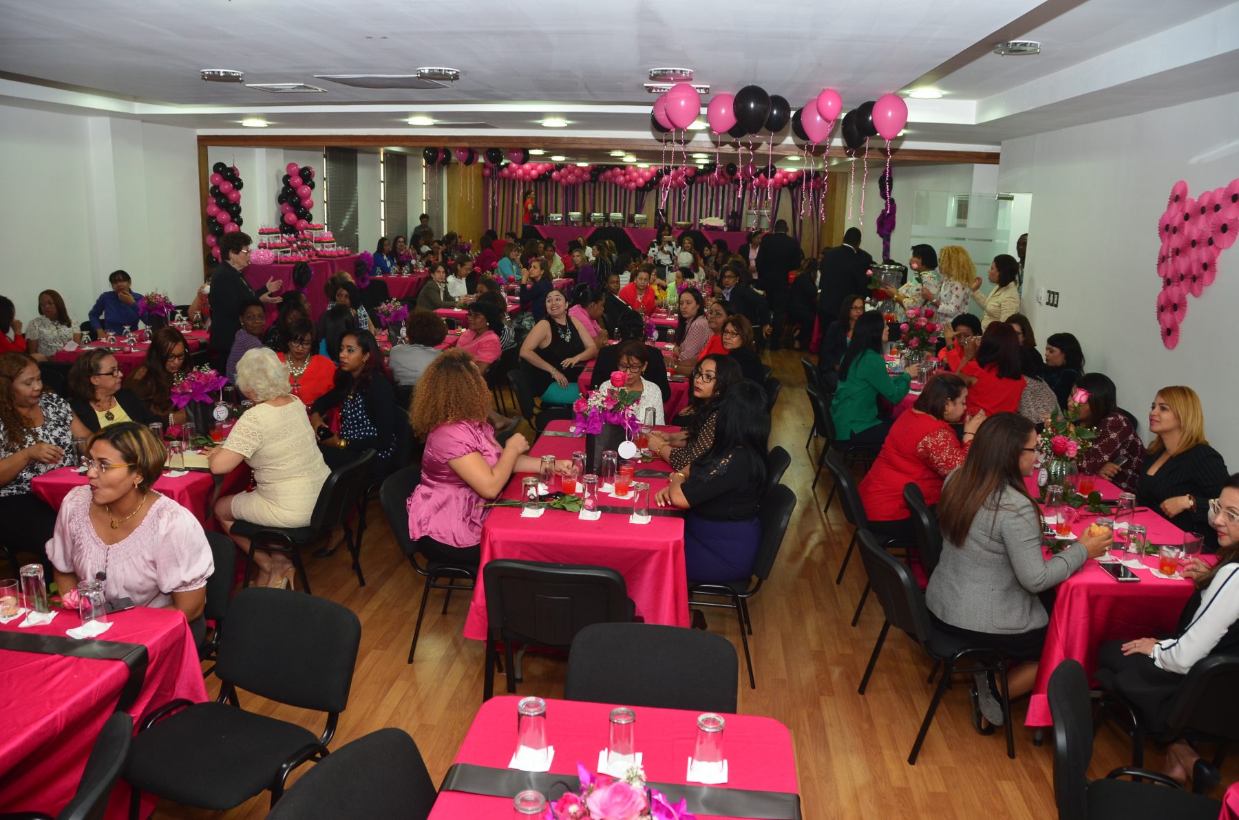 En un ambiente decorado de rosado y negro, con variedad de globos y flores, compartieron las madres en el salón del Centro de Capacitación en Planificación e Inversión Pública.