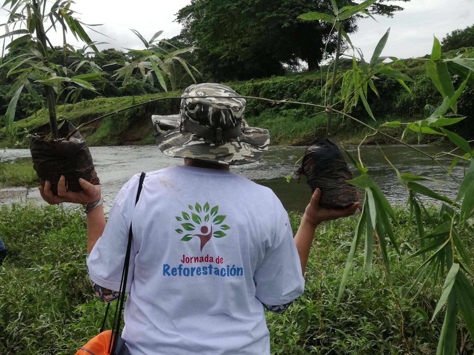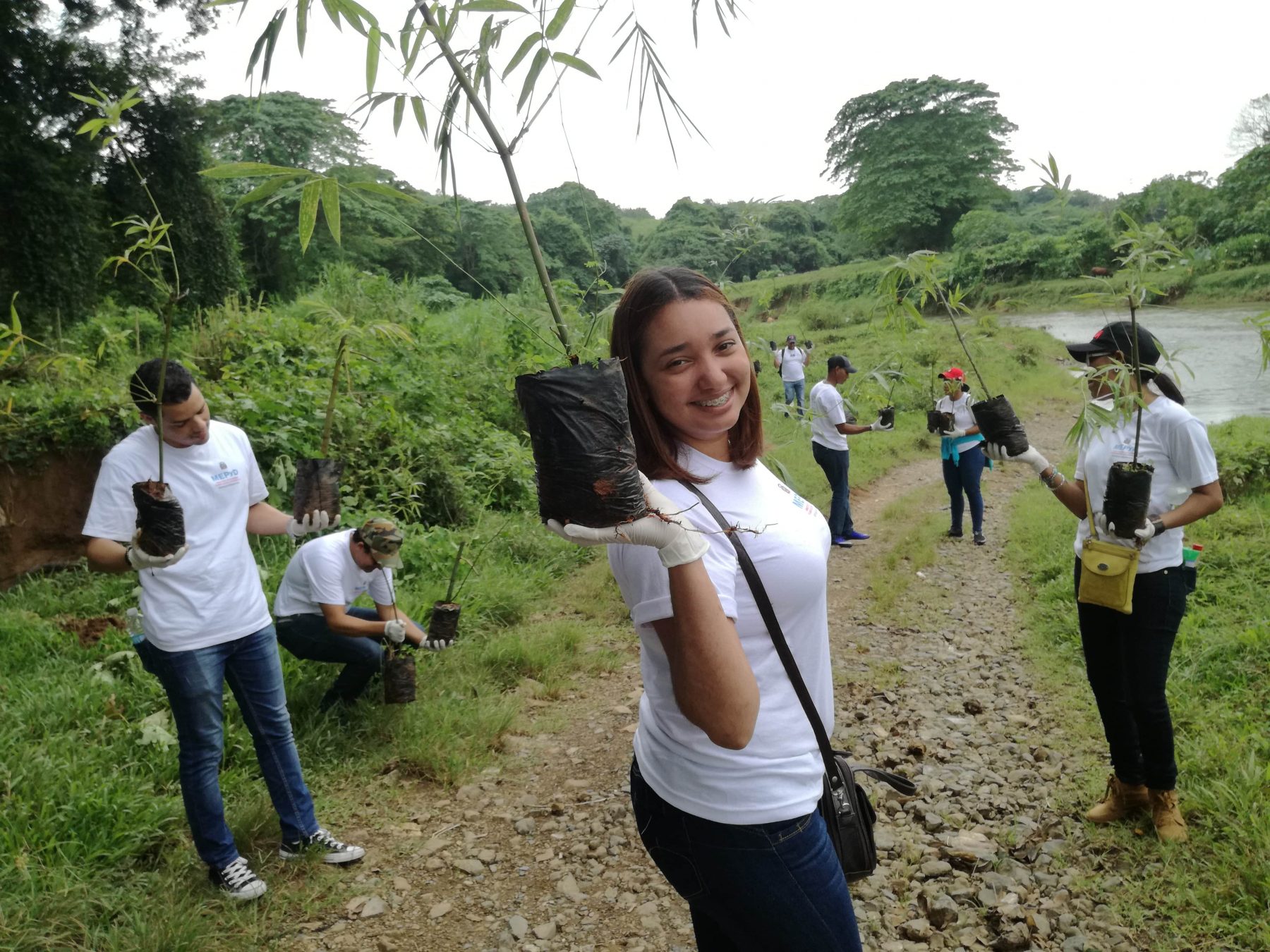 Cuarenta y cinco servidores viajaron al distrito municipal Don Juan, del municipio Monte Plata, donde sembraron unas mil plantas de bambú aportadas por técnicos del Ministerio de Medio Ambiente y Recursos Naturales, que además asesoraron a la brigada en el procedimiento adecuado para la plantación.
