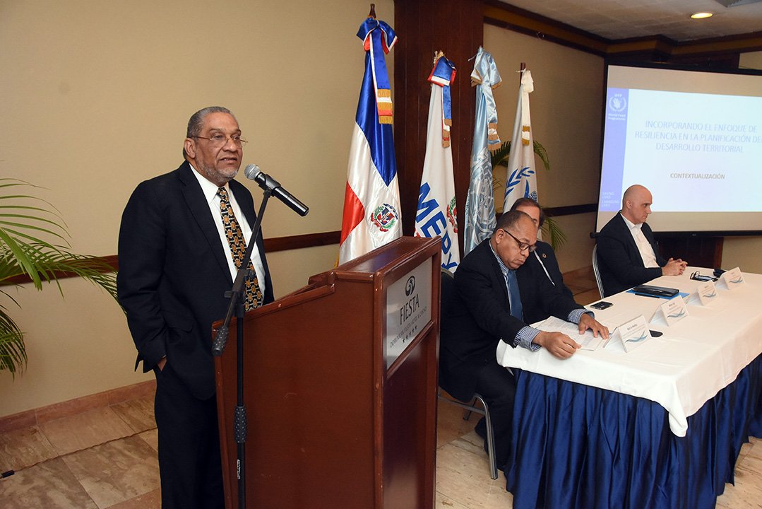 En el acto hablaron el representante país del PMA, William Vigil; el director general de Desarrollo Económico y Social del MEPyD, Roberto Liz; el encargado de Evaluación y Seguimiento de Políticas y Planes de la DGODT, Marcos Martínez y la técnica de resiliencia del PMA, Urbe Secades, que expuso la contextualización y el análisis de contexto integrado y metodología.
