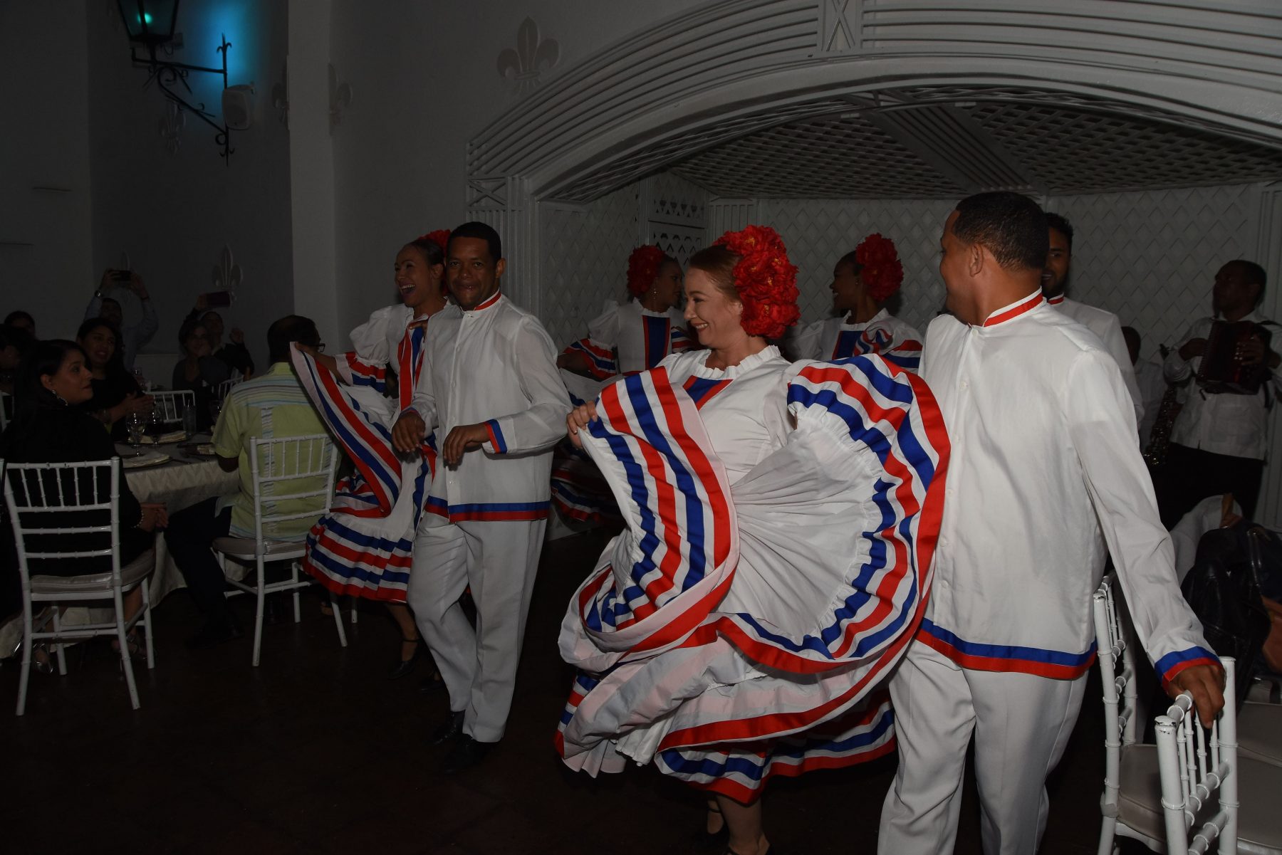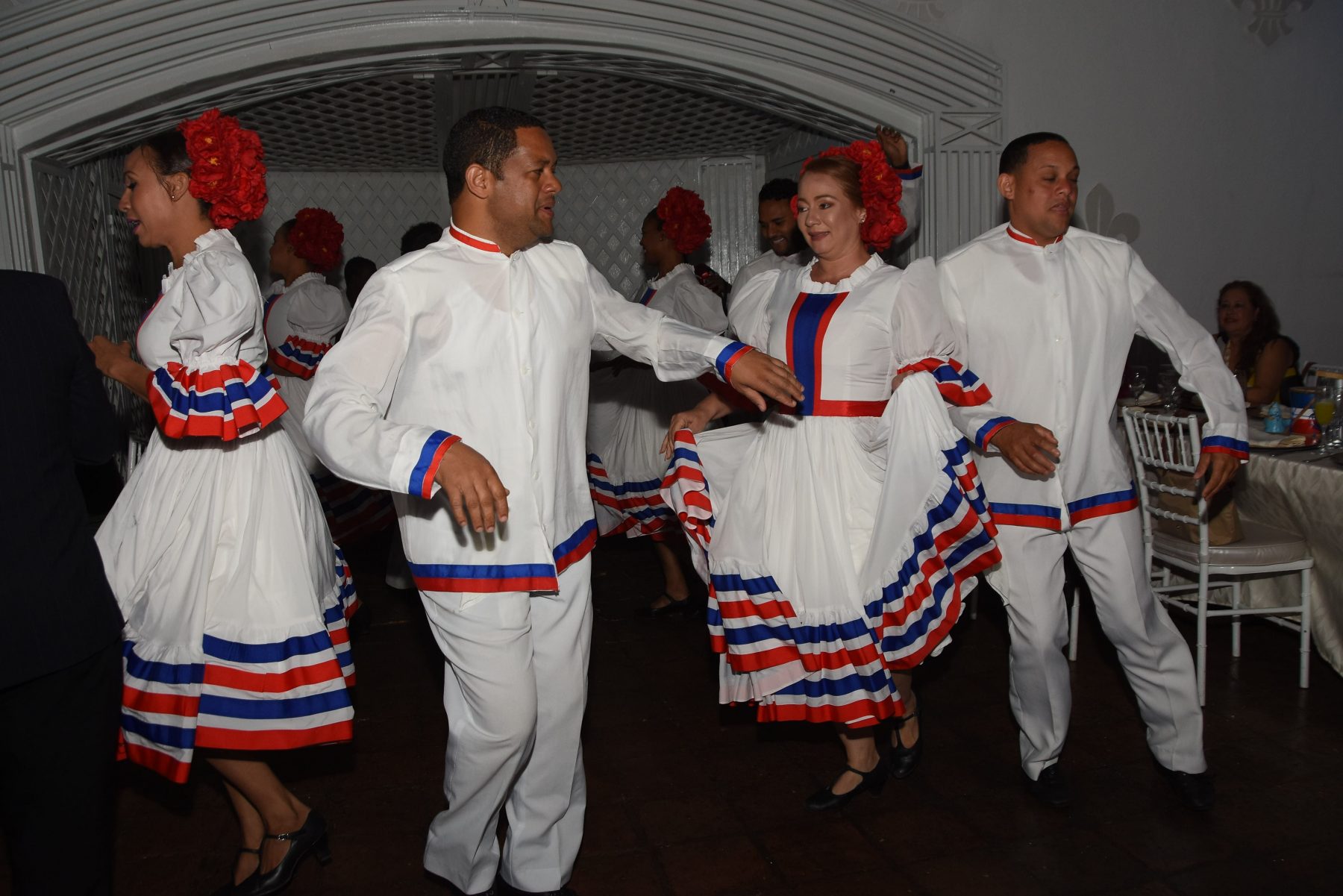 Los invitados especiales disfrutaron de un ambiente decorado con elementos típicos dominicanos como güira y tambora y amenizado por el Ballet Folklórico y el Perico Ripiao del Ministerio de Turismo, que los deleitaron con mangulina y otros bailes autóctonos.