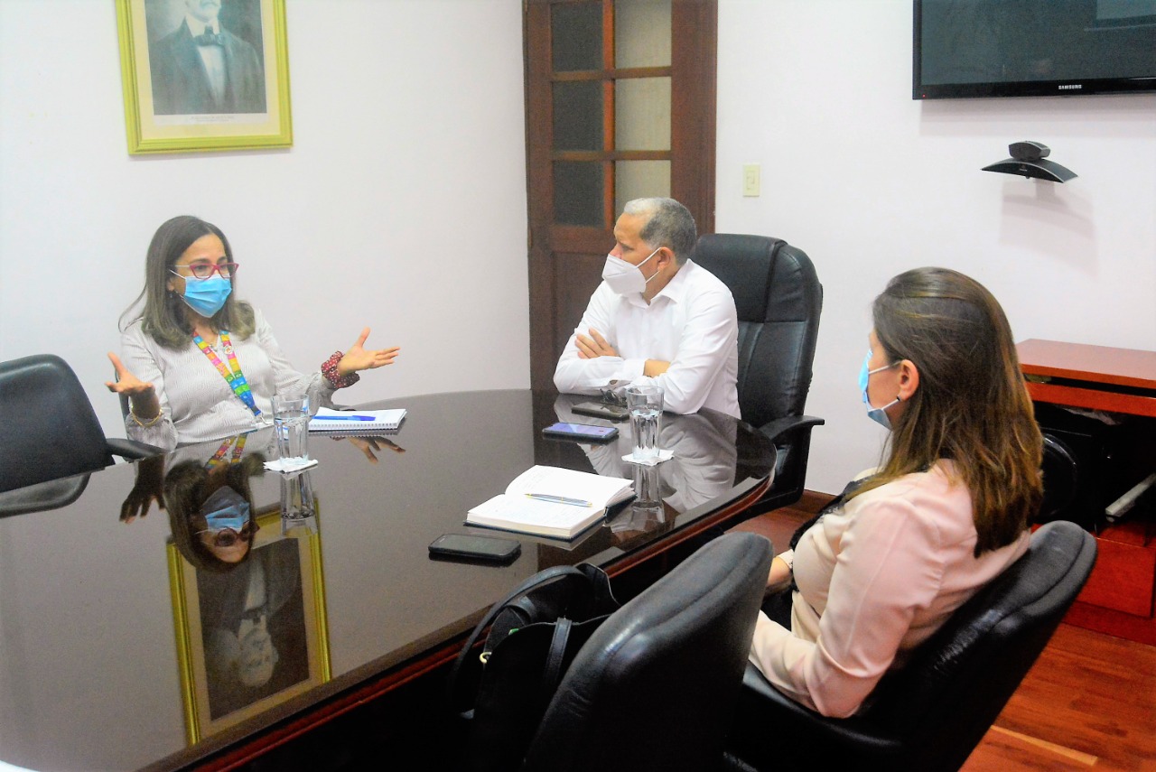El viceministro Matías sostiene una reunión en su despacho con miembros del Programa de las Naciones Unidas para el Desarrollo (PNUD) en el país, encabezados por la directora de Proyectos, Evaydee Penei Serraf.