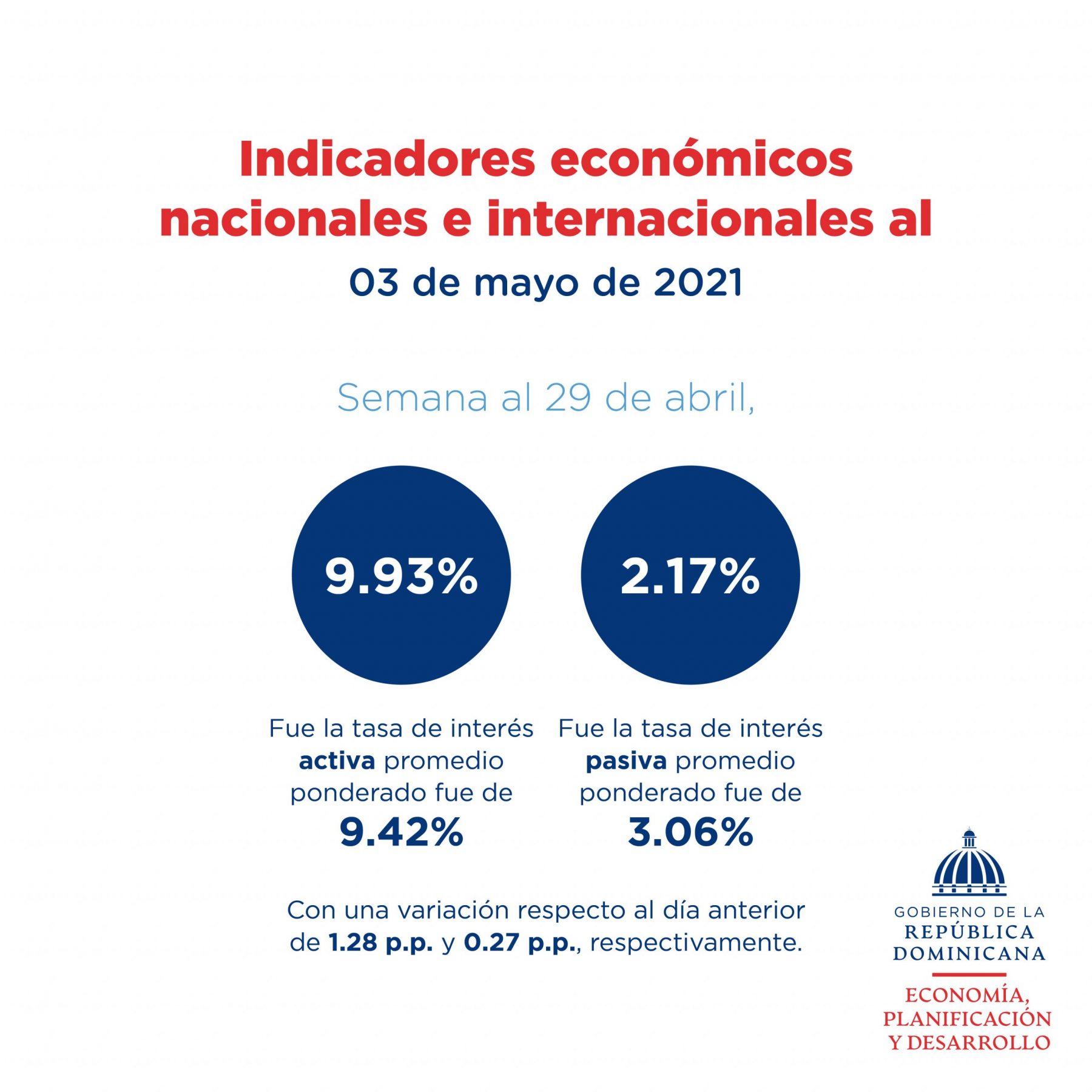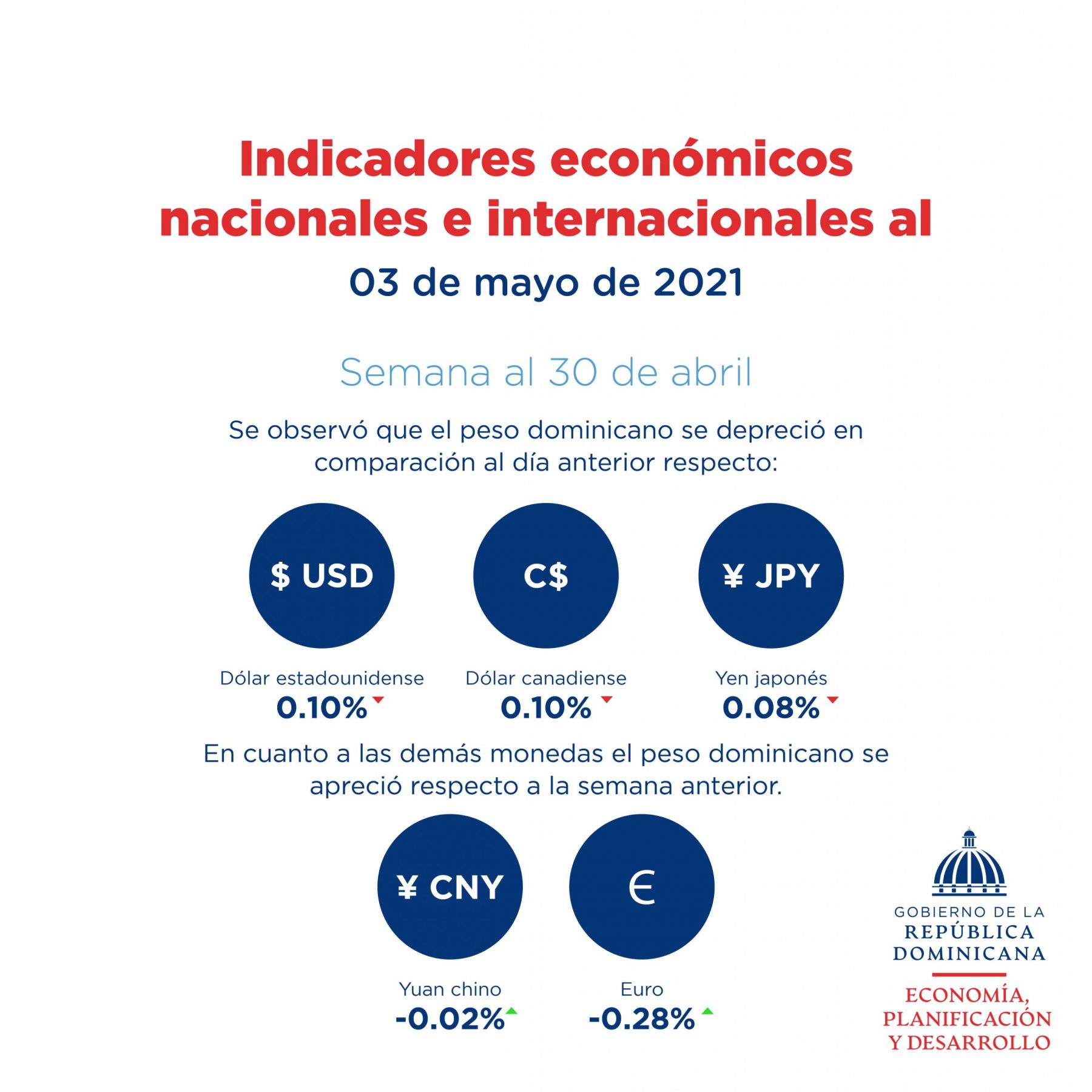 Santo Domingo, República Dominicana. (Abril de 2021). El Ministerio de Economía, Planificación y Desarrollo publica un resumen de las informaciones más relevantes referentes a los principales indicadores económicos nacionales e internacionales de interés para la República Dominicana al 3 de mayo 2021.