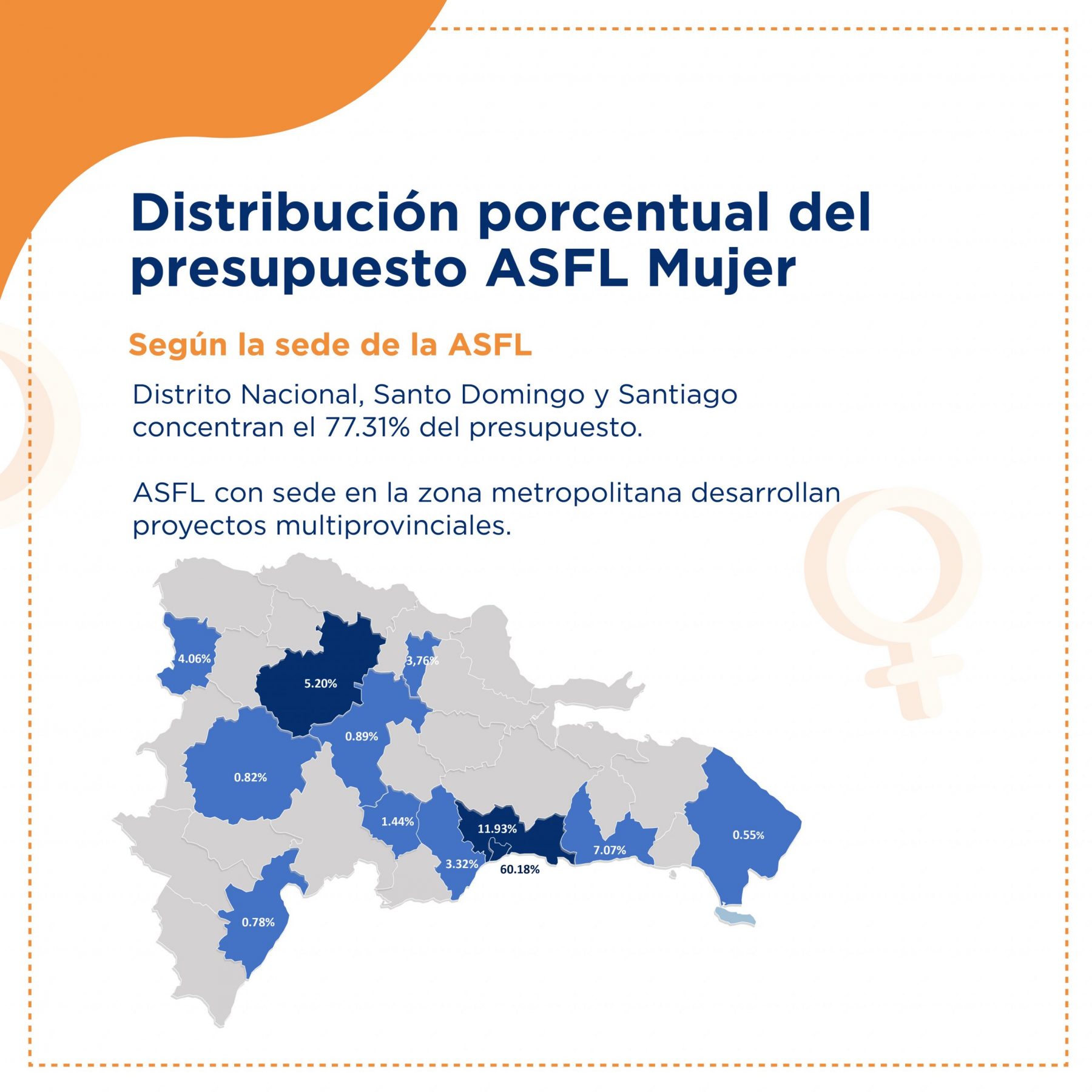 “Aunque las temáticas de equidad de género y empoderamiento femenino son transversales en todos los proyectos de ASFL financiadas por el Estado dominicano, de forma directa, en 2023 se recomendó una inversión de 90.3 millones de pesos en programas y proyectos que trabajan en la eliminación de la violencia basada género, la inclusión social, económica y laboral de la mujer, la generación de capacidades profesionales y el acompañamiento psicológico a mujeres y niñas en todo el país, a través del Ministerio de la Mujer”, se precisan en los registros.