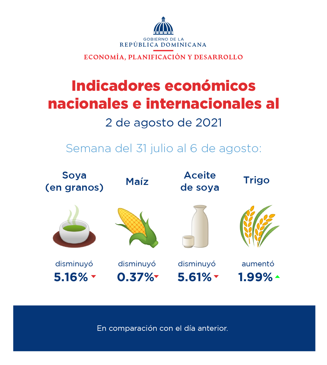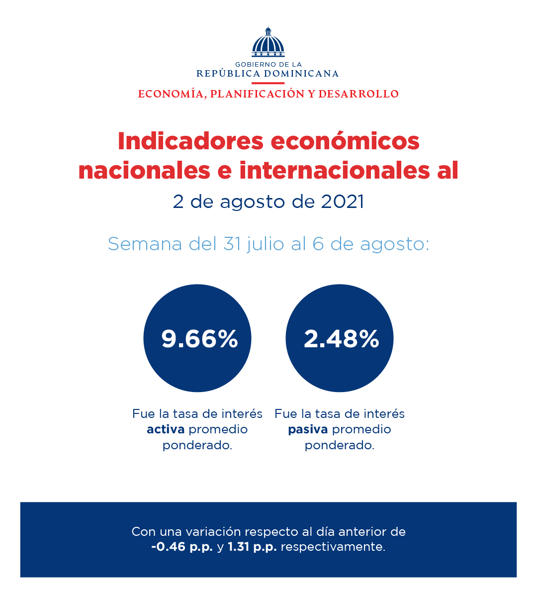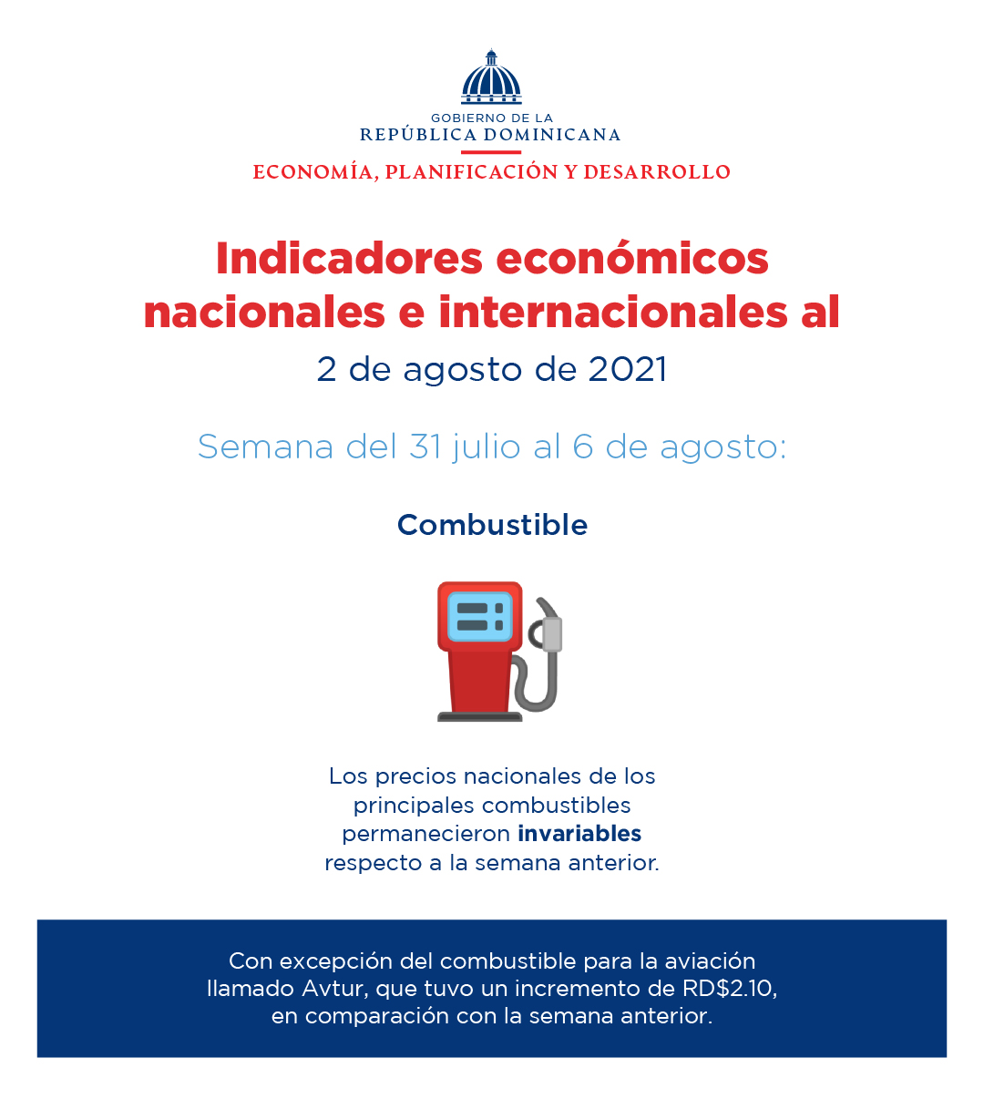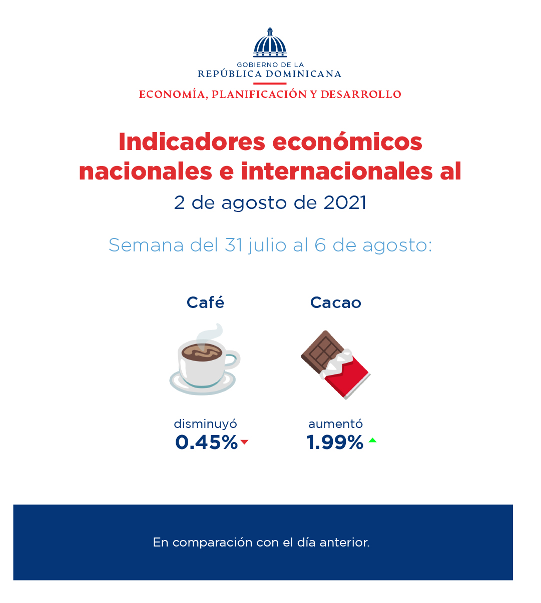 Santo Domingo. República Dominicana (Julio 2021). El Ministerio de Economía, Planificación y Desarrollo, a través de la dirección de Análisis Macroeconómico, del viceministerio de Análisis Económico y Social, ofreció un resumen de las informaciones más relevantes referentes a los principales indicadores económicos nacionales e internacionales de interés para la República Dominicana, al día 2 de agosto del año 2021.