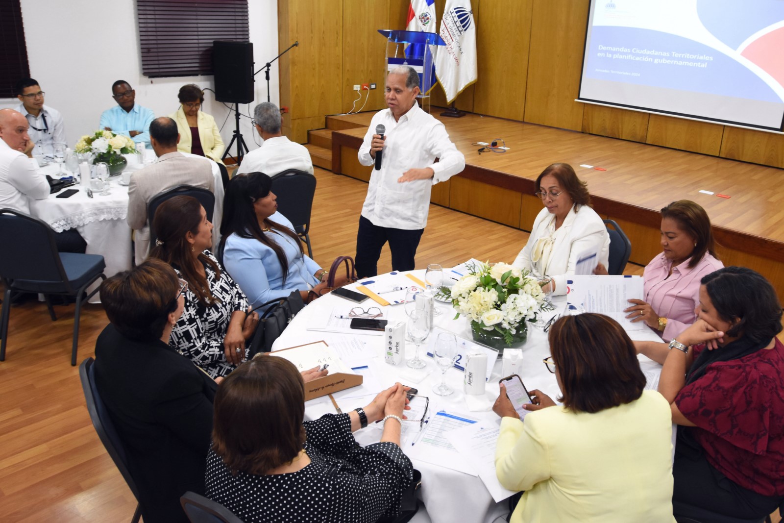 Durante el encuentro fue presentado el proceso de levantamiento de las demandas ciudadanas territoriales como mecanismos del sistema RUDCT por Horacio Medrano, director de Promoción de los Consejos de Desarrollo; panorama actual de la gestión y respuesta a las demandas territoriales con las sectoriales por Leomary Liriano, encargada del departamento de Articulación de la Planificación del Ministerio de Economía.