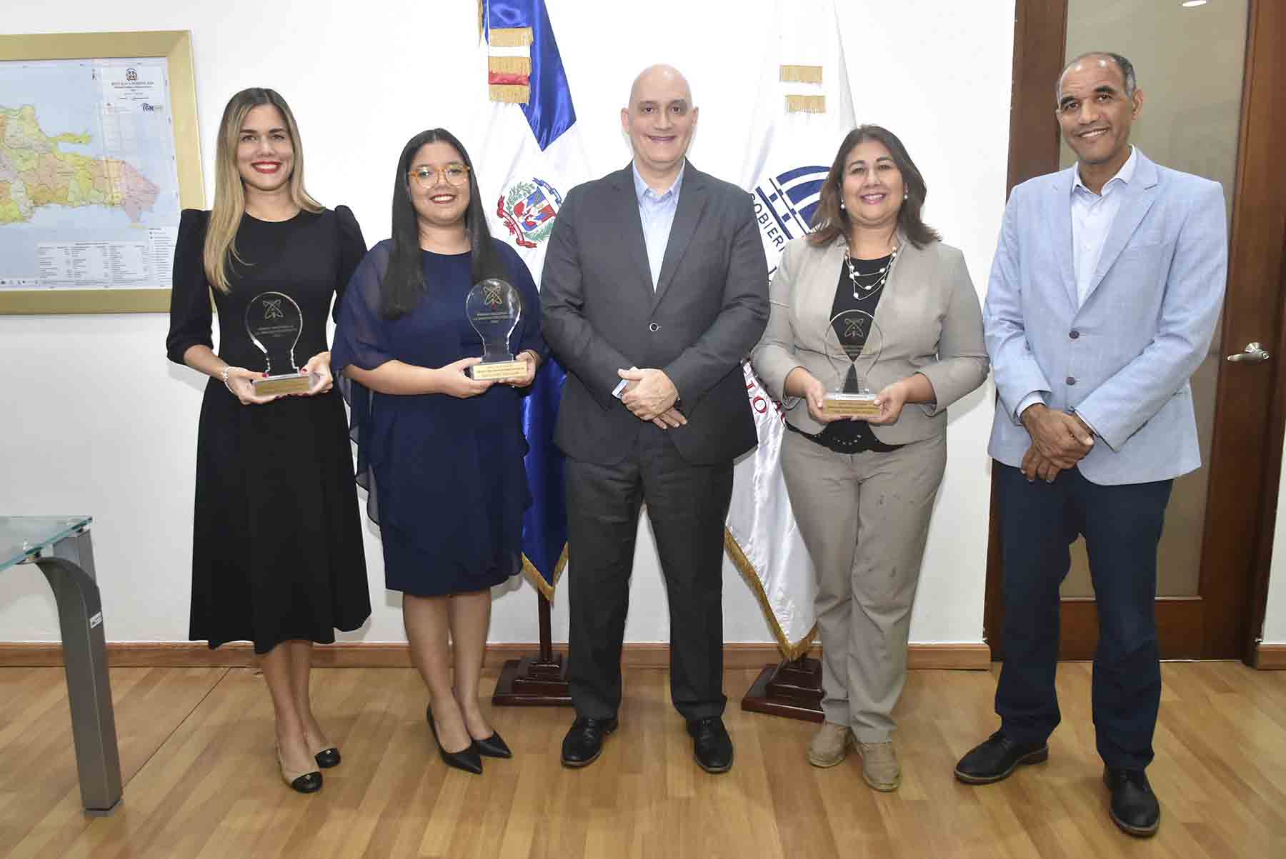 El viceministro de Sectores Productivos del Ministerio de Economía, Martín Francos recibió el premio, en un acto que fue encabezado por la vicepresidenta de la República, Raquel Peña, junto al ministro del MAPRE, Andrés Bautista, y la viceministra de Innovación, Transparencia y Atención Ciudadana, Dilia Leticia Jorge Mera, con el objetivo de resaltar e impulsar iniciativas que transforman las políticas públicas, procesos, y servicios que se prestan a la ciudadanía.