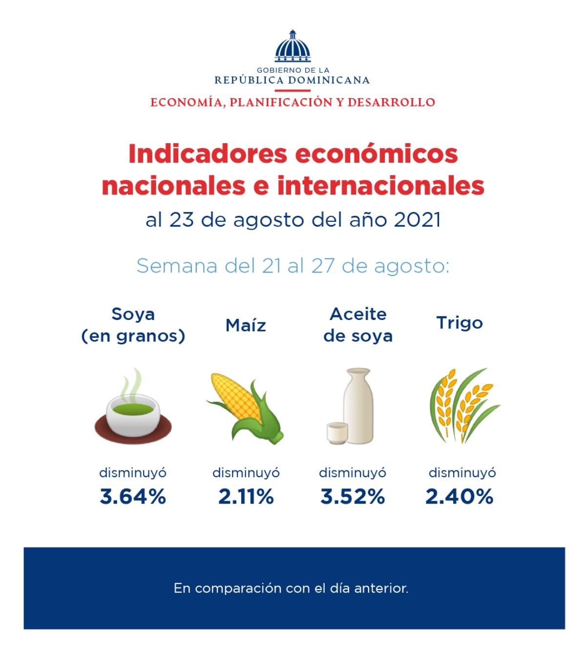 Santo Domingo, República Dominicana. (Agosto 2021). El Ministerio de Economía, Planificación y Desarrollo publica el resumen de las informaciones más relevantes referentes a los principales indicadores económicos nacionales e internacionales de interés para la República Dominicana, al día 30 de agosto del año 2021.