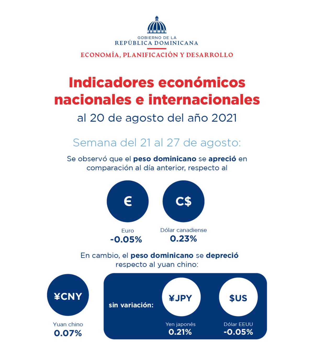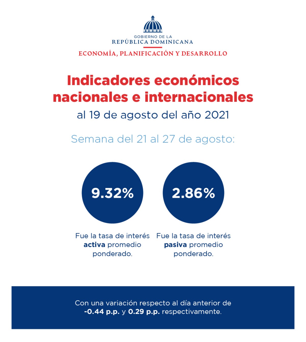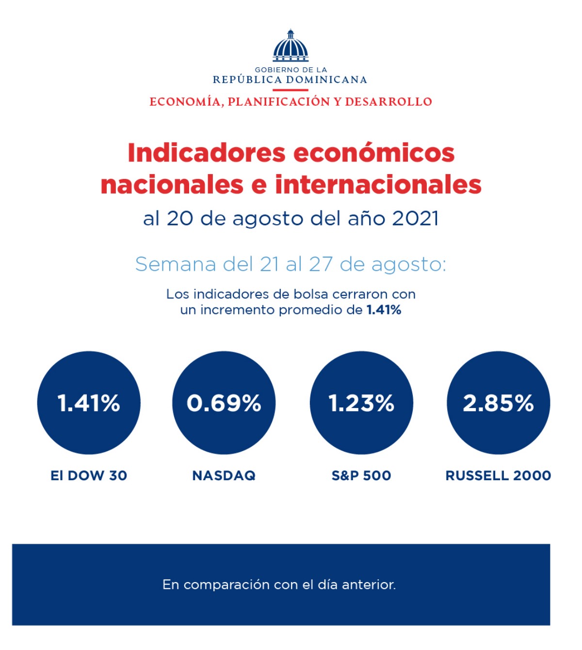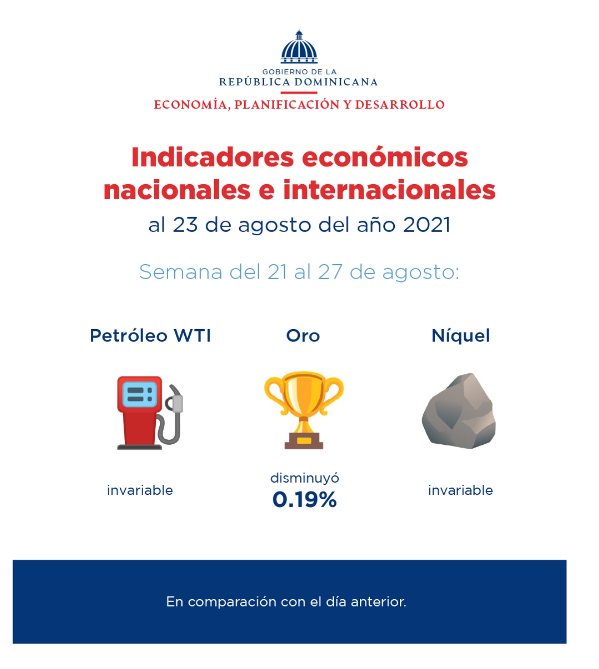1 septiembre, 2021De manera semanal son presentados los principales indicadores económicos nacionales e internacionales de interés para la República Dominicana.