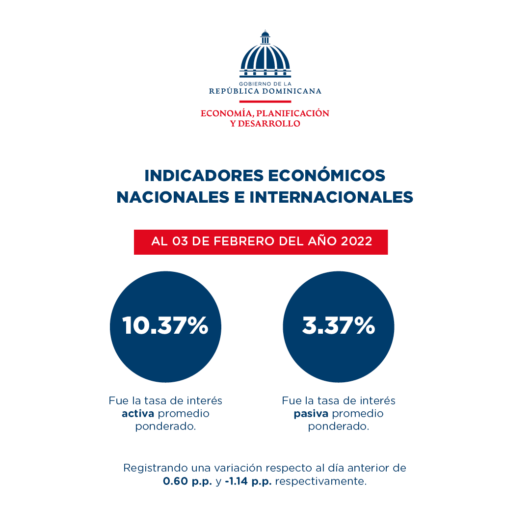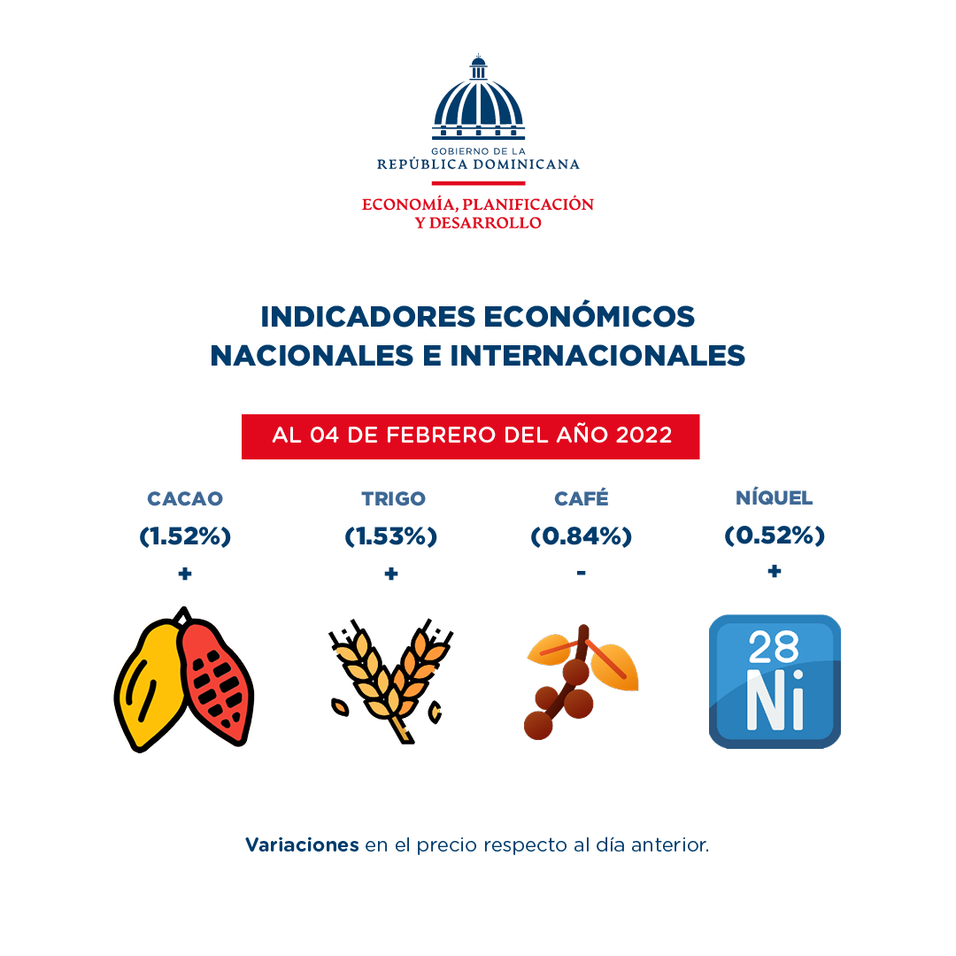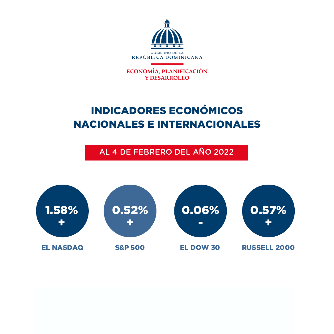 Santo Domingo, República Dominicana. (Febrero de 2022). El Ministerio de Economía, Planificación y Desarrollo publica un resumen de las informaciones más relevantes de los principales indicadores económicos nacionales e internacionales de interés para la República Dominicana al 07 de febrero de 2022.