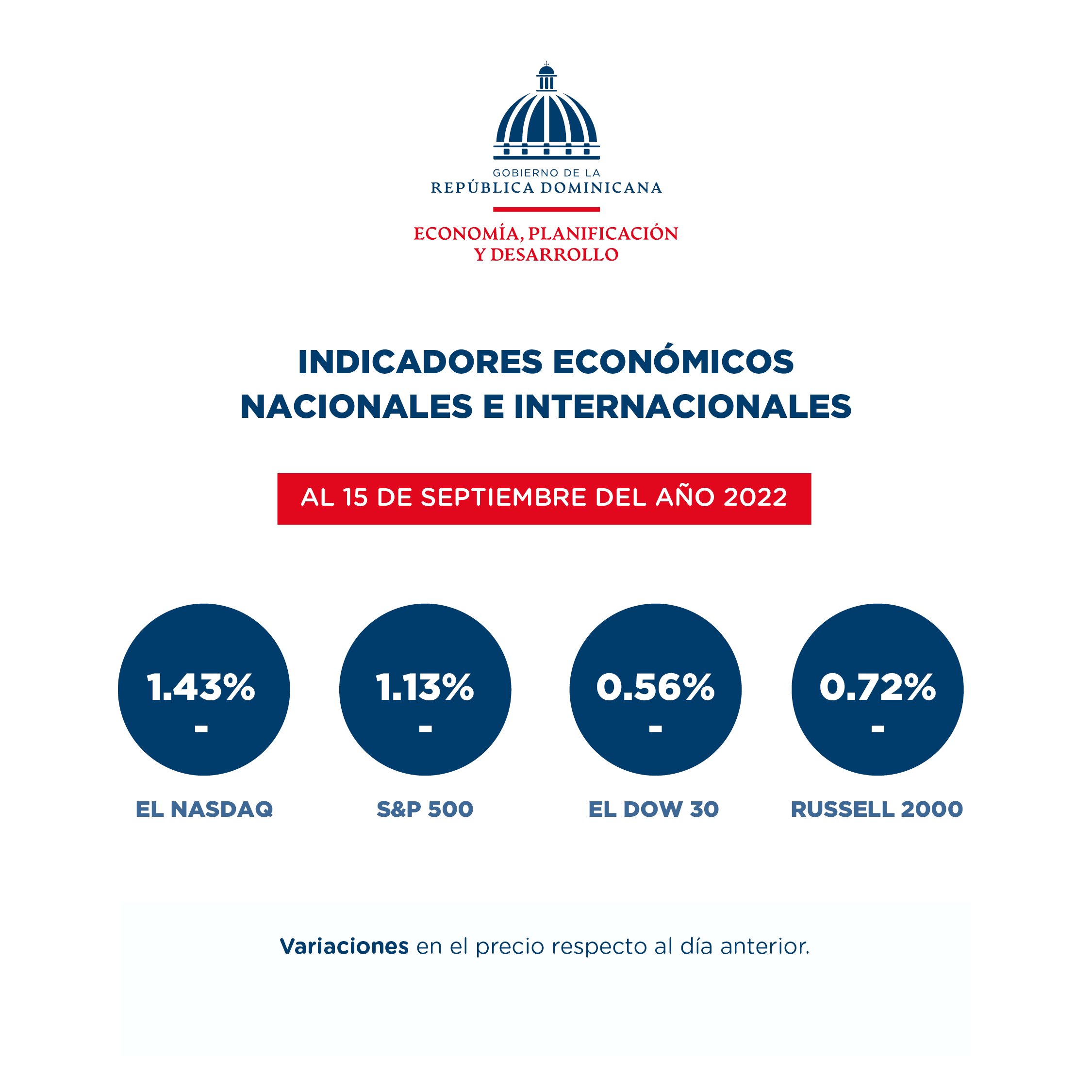 Santo Domingo, República Dominicana. (Septiembre de 2022). El Ministerio de Economía, Planificación y Desarrollo publica un resumen de las informaciones más relevantes de los principales indicadores económicos nacionales e internacionales de interés para el país al 20 de septiembre de 2022.