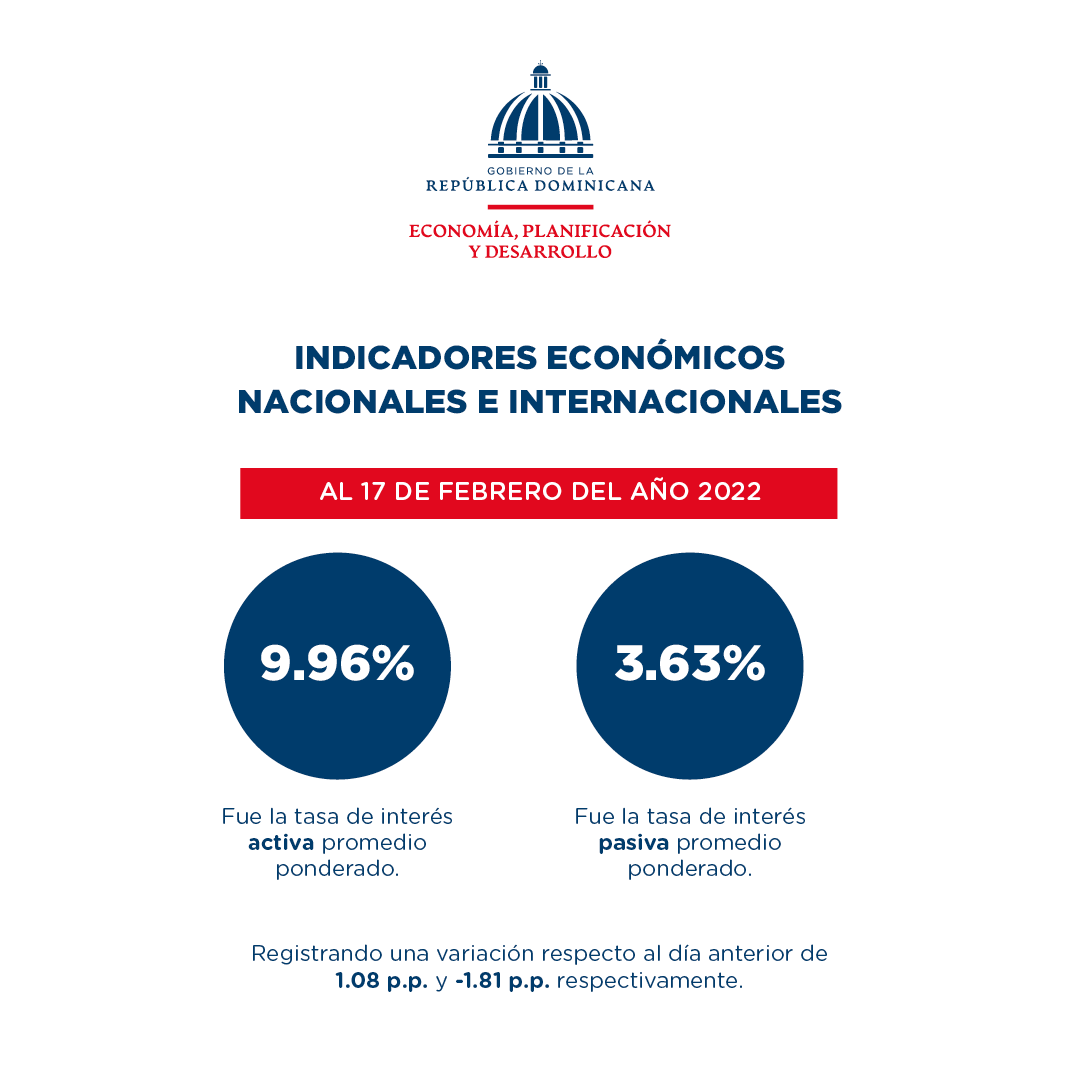 Santo Domingo, República Dominicana. (Febrero de 2022). El Ministerio de Economía, Planificación y Desarrollo publica un resumen de las informaciones más relevantes de los principales indicadores económicos nacionales e internacionales de interés para la República Dominicana al 21 de febrero de 2022.