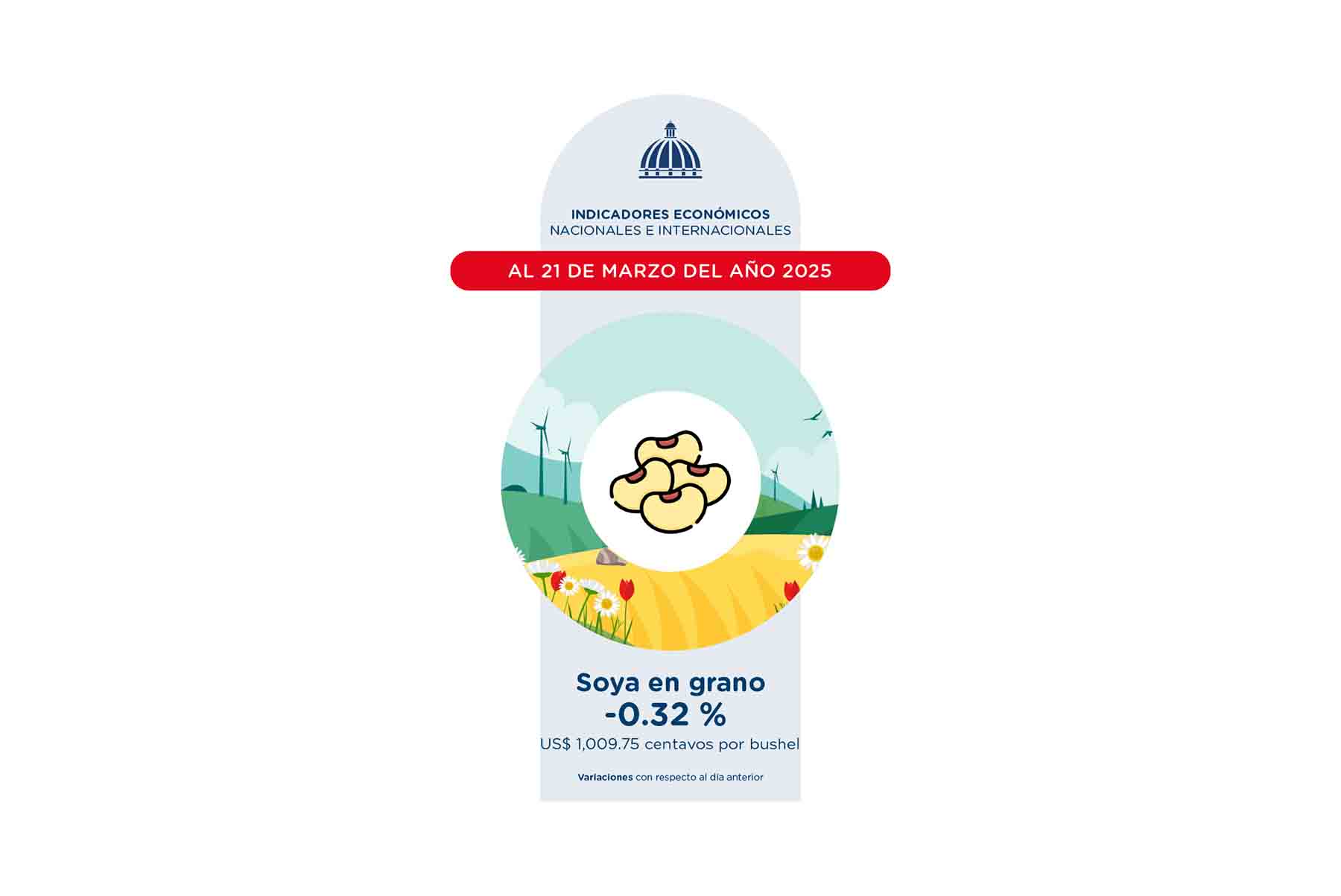 A su vez, puntualiza que la mayoría de commodities alimentarios, al 21 de marzo, disminuyeron su valor con respecto al día anterior: el aceite de soya en 1.64 % (US$ 42.01 centavos por libra), la soya en granos en 0.32 % (US$ 1,009.75 centavos por bushel), el maíz en 1.01 % (US$ 464.25 centavos por bushel) el café en 0.19 % (US$ 391.40 centavos por libra) y el cacao en 3.79 % (US$ 7,765 por toneladas métricas). Por otro lado, indica que el trigo aumentó su valor en 0.18 % (US$ 558.25 centavos por bushel).