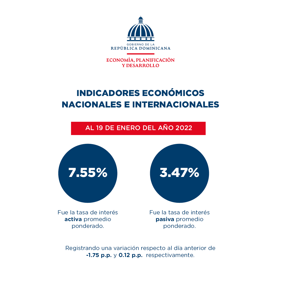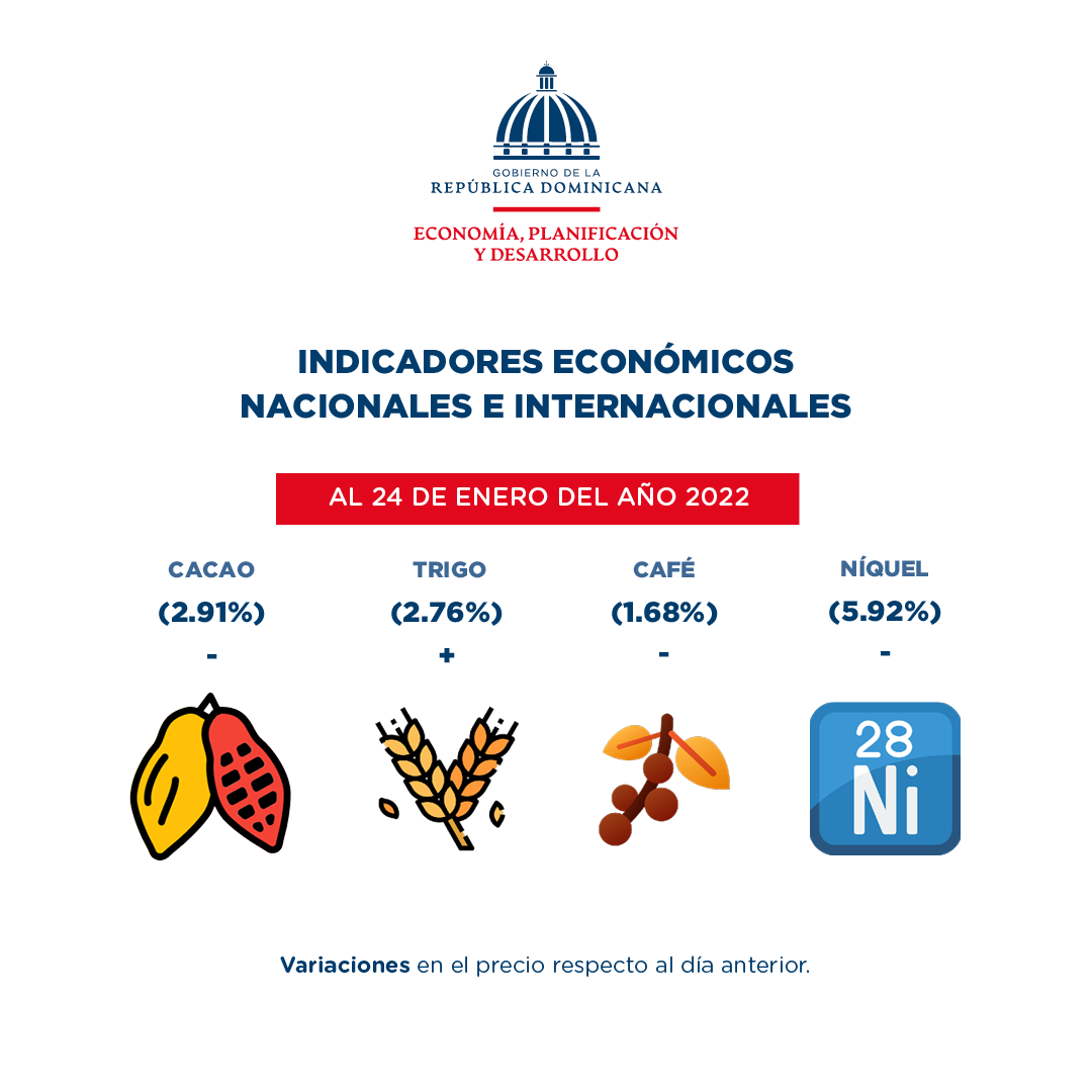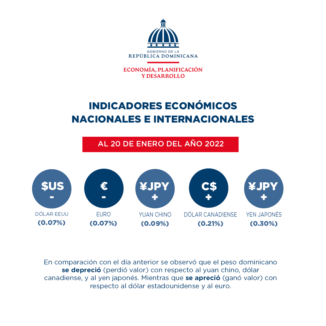 Santo Domingo, República Dominicana. (Enero de 2022). El Ministerio de Economía, Planificación y Desarrollo publica un resumen de las informaciones más relevantes de los principales indicadores económicos nacionales e internacionales de interés para la República Dominicana al 25 de enero de 2022.