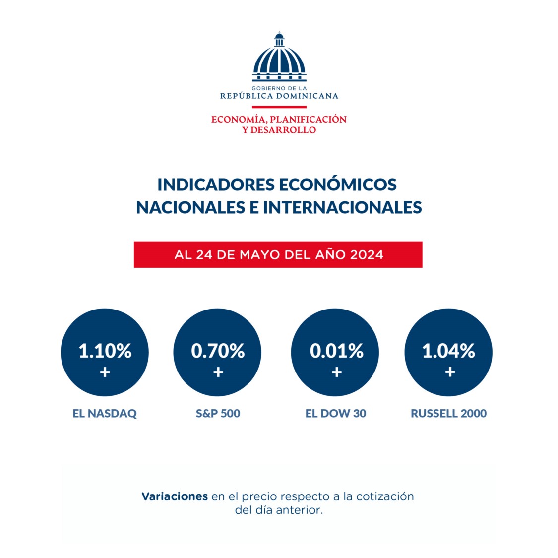 Santo Domingo, República Dominicana (Mayo de 2024). El Ministerio de Economía, Planificación y Desarrollo publica un resumen de las informaciones más relevantes sobre los principales indicadores económicos nacionales e internacionales de interés para la República Dominicana al 27 de mayo de 2024.