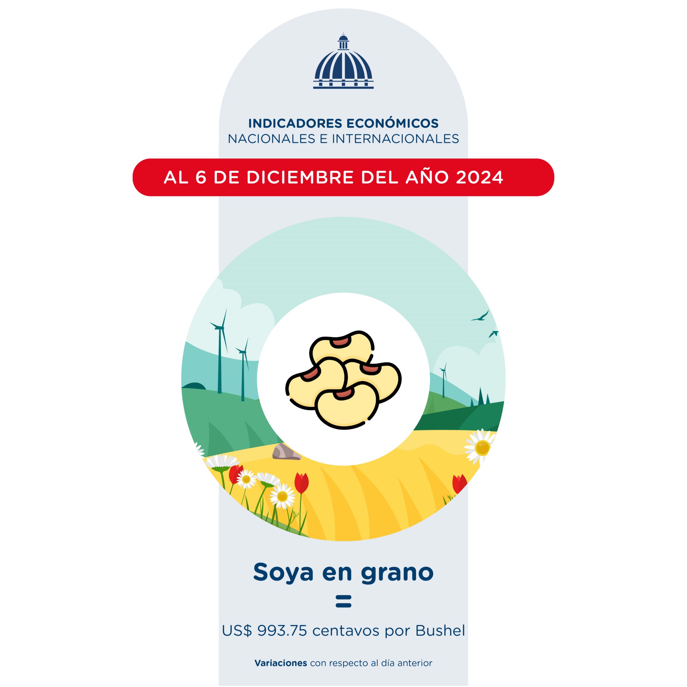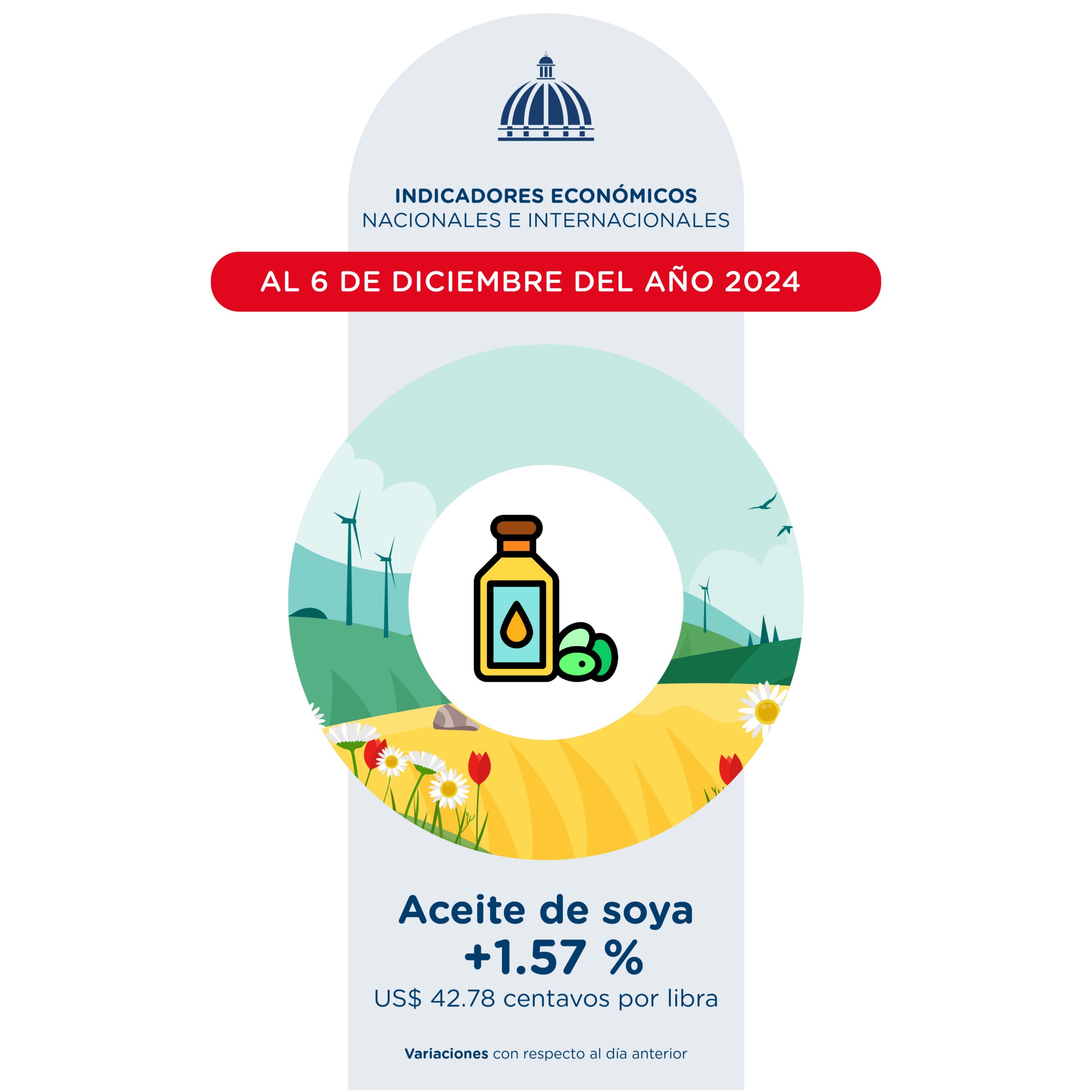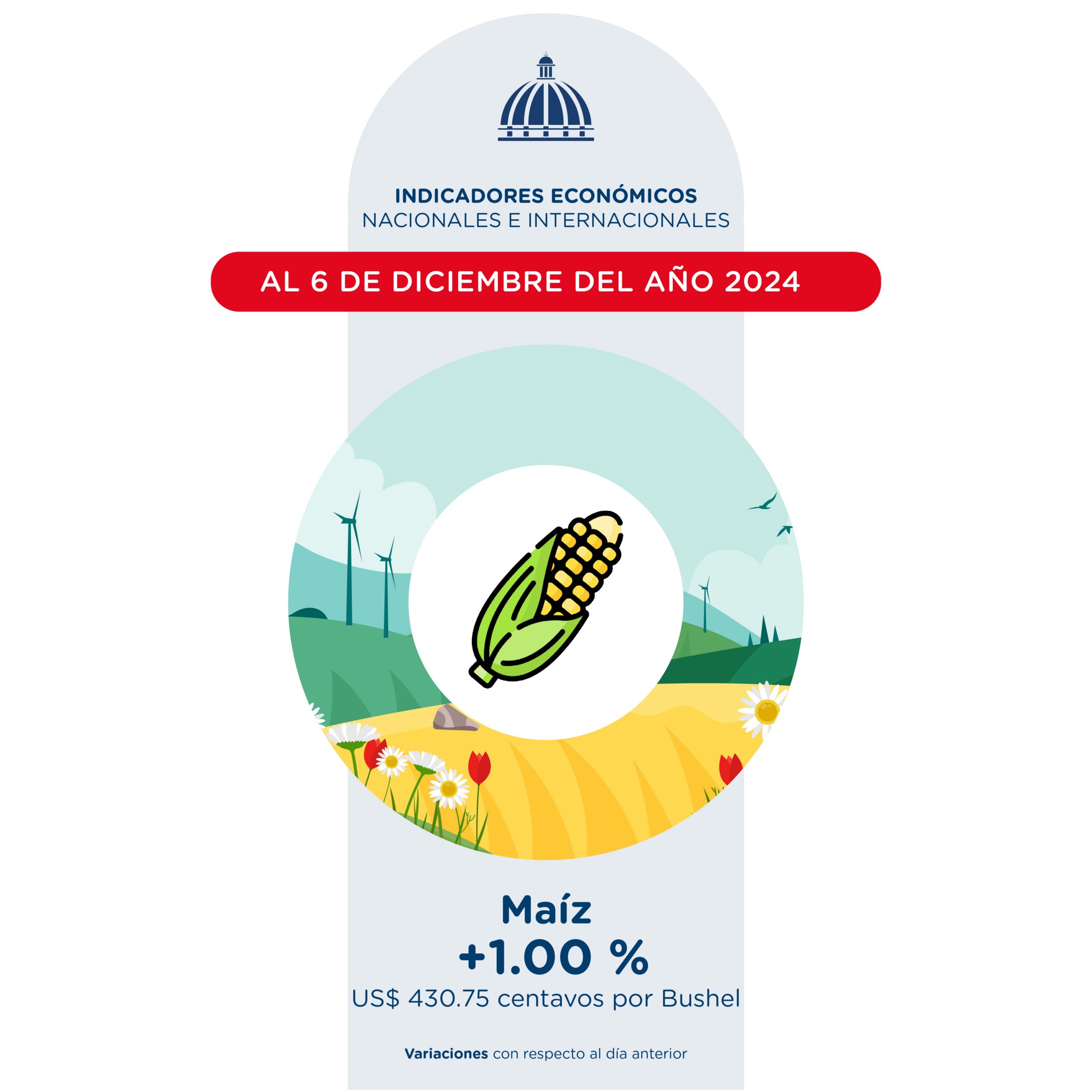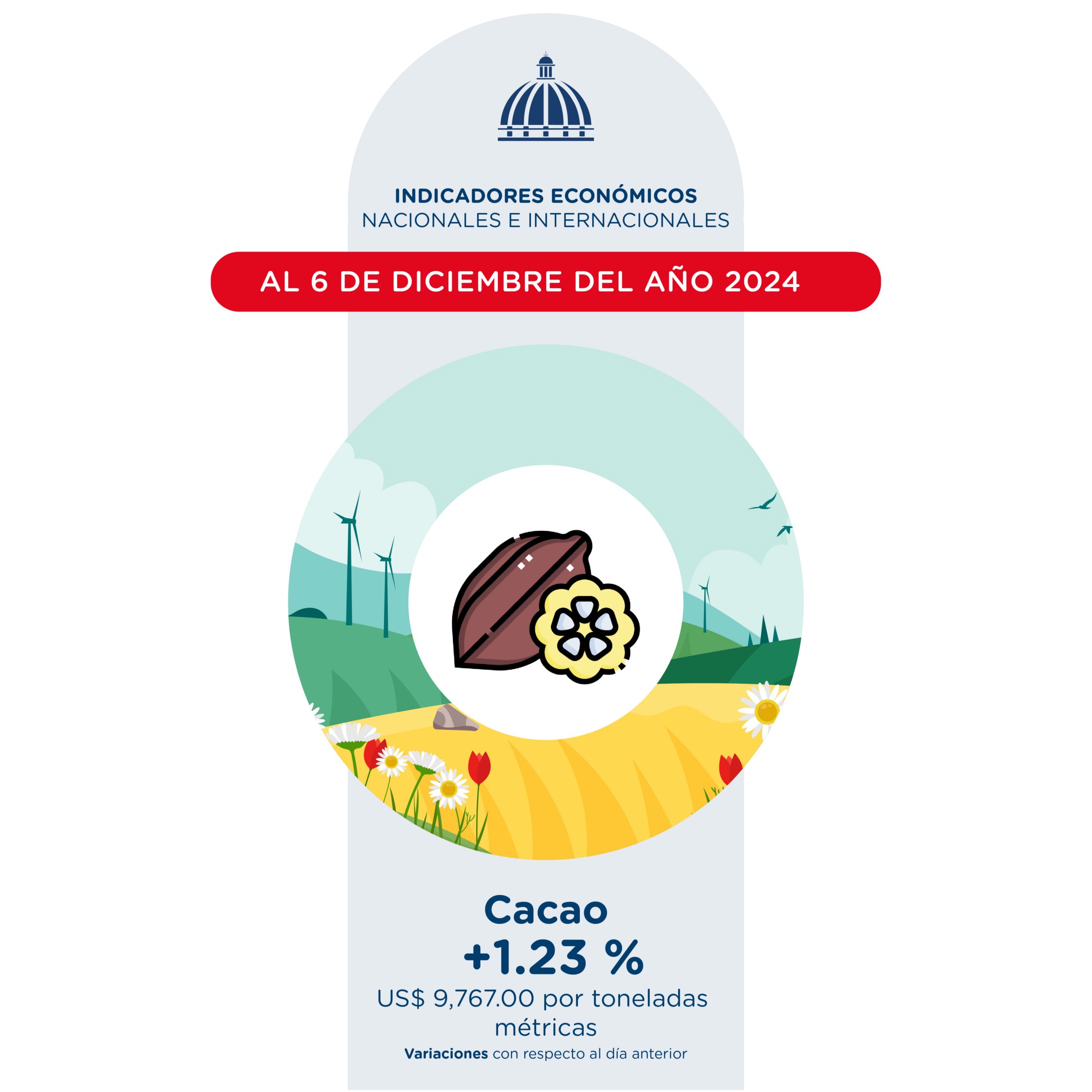 Sostiene que entre los commodities alimentarios, al 6 de diciembre, aumentaron su valor con respecto al día anterior, el aceite de soya en un 1.57 % (US$ 42.78 centavos por libra), el cacao en un 1.23 % (US$ 9,767.00 por toneladas métricas), el maíz en 1.00 % (US$ 430.75 centavos por Bushel). Mientras que el trigo disminuyó su precio en un 0.78 % (US$ 542.50 centavos por bushel) y la soya en granos se mantuvo invariable (US$ 993.75 centavos por Bushel).