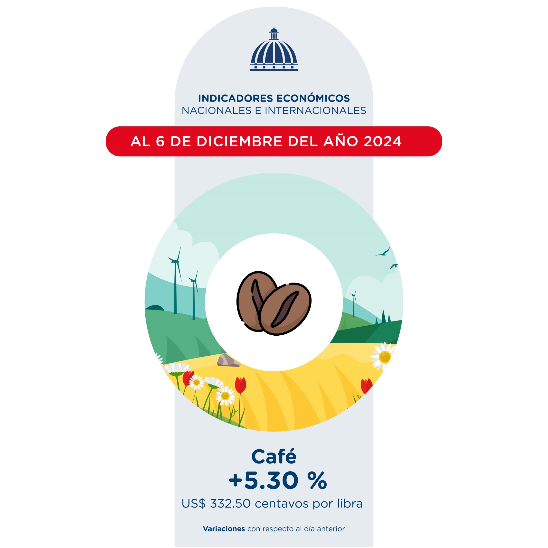 La publicación de la Dirección de Análisis Macroeconómico del Viceministerio de Análisis Económico y Social, puntualiza que al 06 de diciembre, el precio del café aumentó en un 5.30 % ubicándose en valor de US$ 332.50 centavos por libra, con respecto al día anterior.