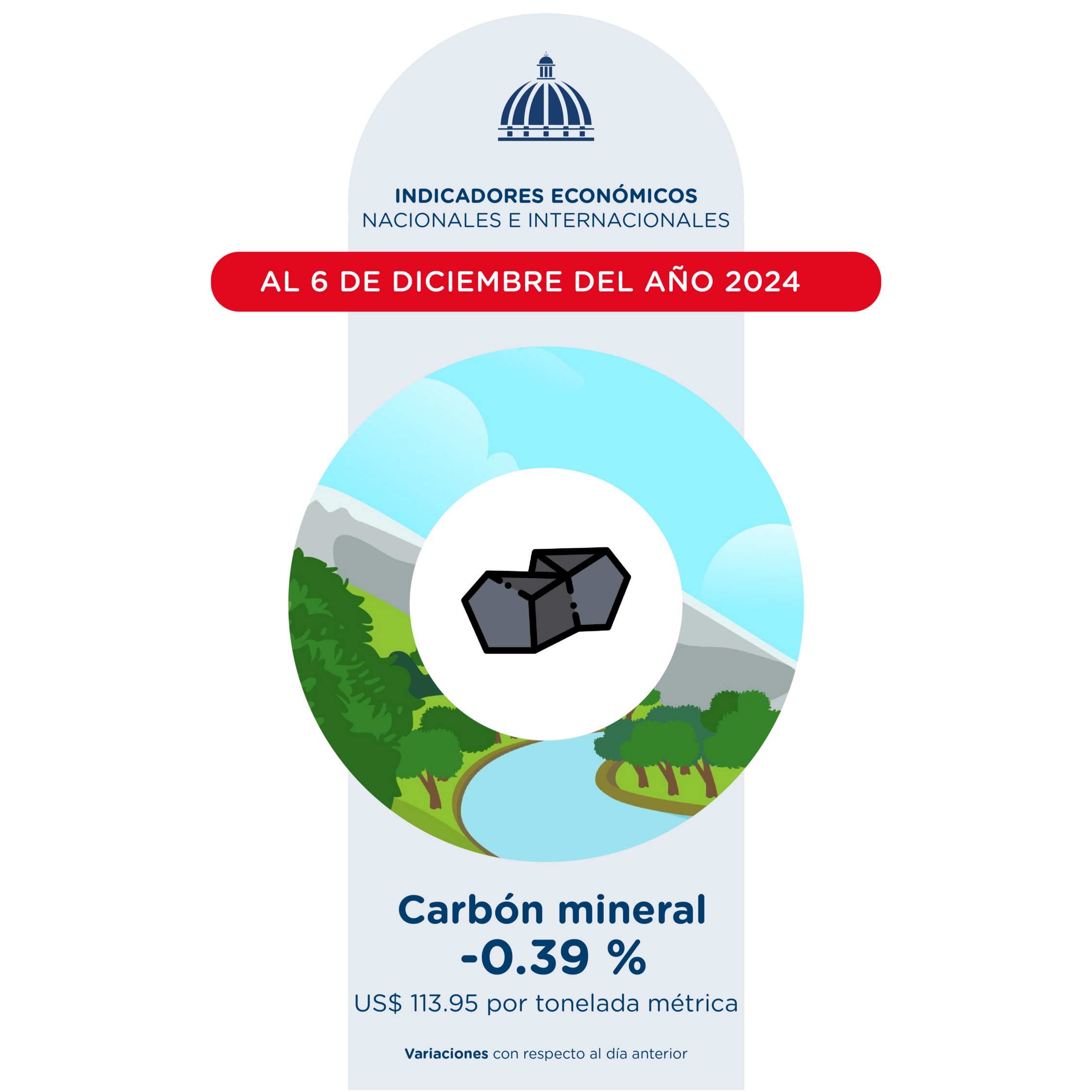 Al 06 de diciembre, el precio del carbón mineral disminuyó en un 0.39 %, cotizando en US$ 113.95 por tonelada métrica. Mientras el precio del petróleo WTI de igual forma disminuyó en un 1.61 %, para cotizar el precio en US$ 67.20 por barril de petróleo por día.
