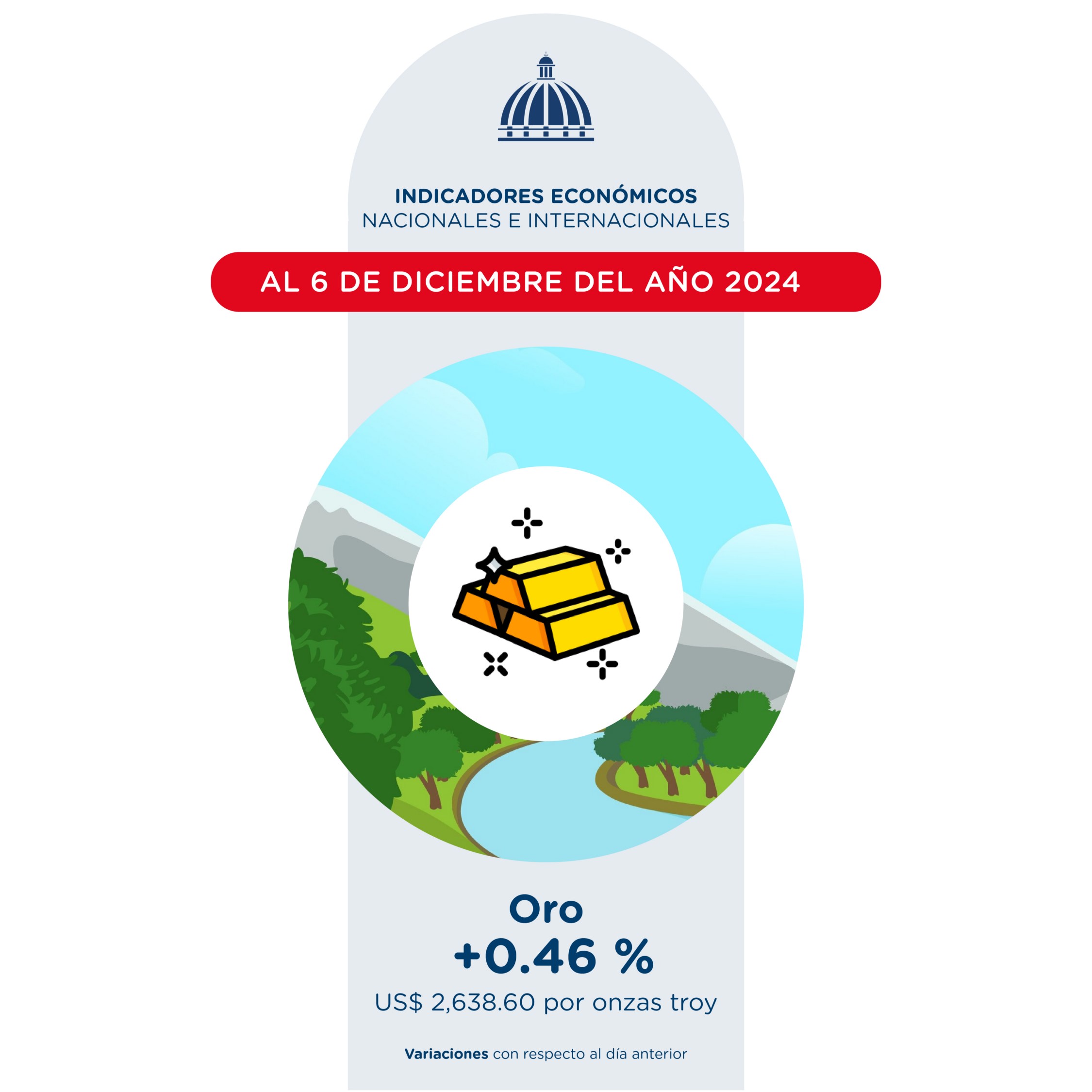 Señala que el precio del oro se ubicó al día 06 de diciembre en US$ 2,638.60 por onzas troy, aumentando en un 0.46 % con respecto al valor del día anterior. En cuanto al valor del níquel, establece que este tuvo un aumento leve de 0.13 % siendo su valor US$ 15,983.00 por toneladas métricas.