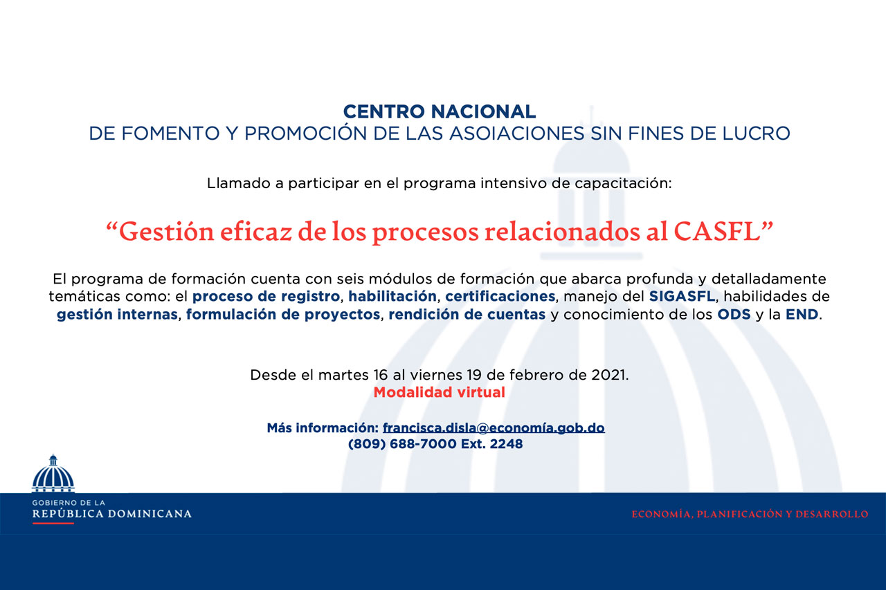Ministerio de Economía, Planificación y Desarrollo convoca a las ASFL a programa de capacitación
