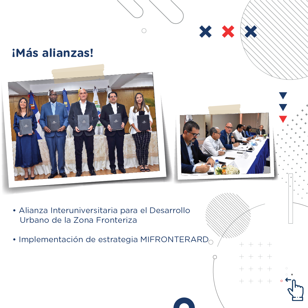 En un segundo aspecto, se conformó la Alianza Interuniversitaria para el Desarrollo Urbano de la Zona Fronteriza, a través del diseño urbano de las ciudades identificadas, el ordenamiento del territorio, el diseño de proyectos y la articulación Gobierno central – academia – ayuntamientos.