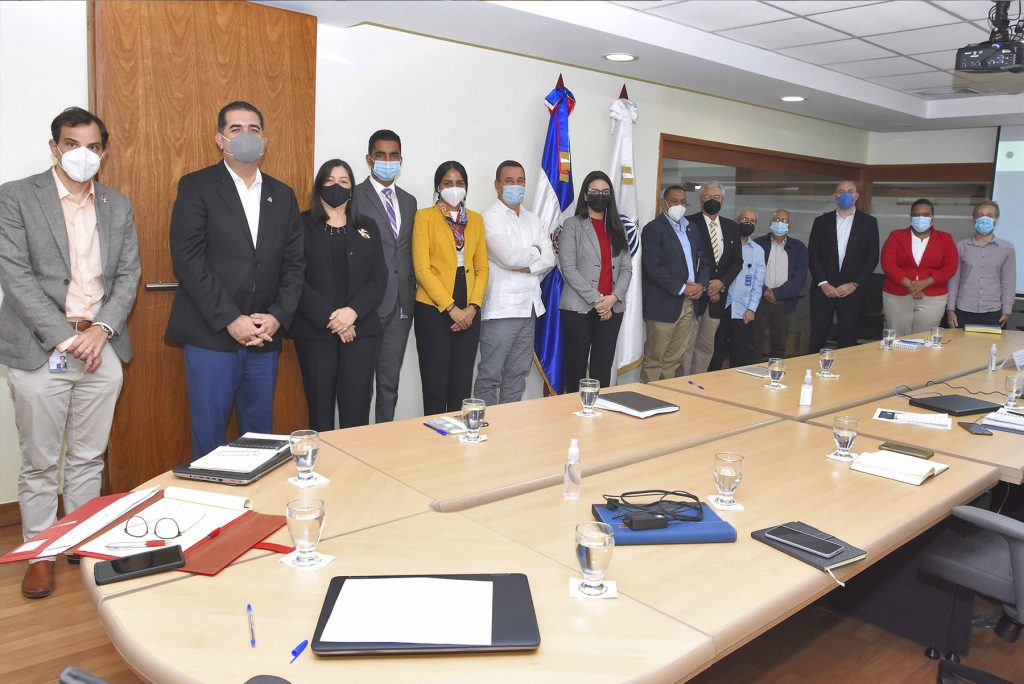 El viceministro de Ordenamiento Territorial y Desarrollo Regional, Domingo Matías, encabezó la reunión de trabajo con PNUD. A su izquierda, el director de Promoción de los Consejos de Desarrollo Provinciales, Luis Alberto Caraballo y la encargada de coordinación de los ODS por el PNUD, Magdalena Martínez del Cerro.