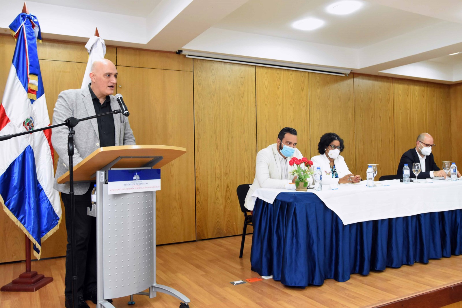Miguel Ceara-Hatton, ministro de Economía, Planificación y Desarrollo, encabeza junto Olaya Dotel, viceministra de Cooperación Internacional y Ordenadora Nacional de los Fondos Europeos para el Desarrollo, y María José Martínez, viceministra de Crédito Público del ministerio de Hacienda.