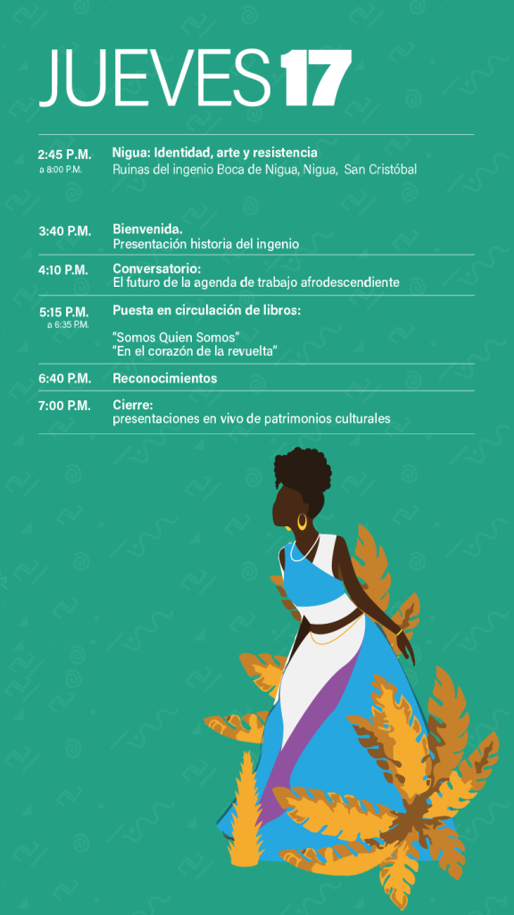 Es un evento cultural impulsado por el Ministerio de Cultura y el Sistema de las Naciones Unidas, con el apoyo del Ministerio de Relaciones Exteriores y el Ministerio de Economía, Planificación y Desarrollo de la República Dominicana, que se estará llevando a cabo del 17 al 19 de marzo. Este escenario se ha pensado para contribuir a una narrativa local basada en nuestras raíces Afrocaribeña, hispana, indígena entre otras, motivando el reconocimiento de la afro dominicanidad.