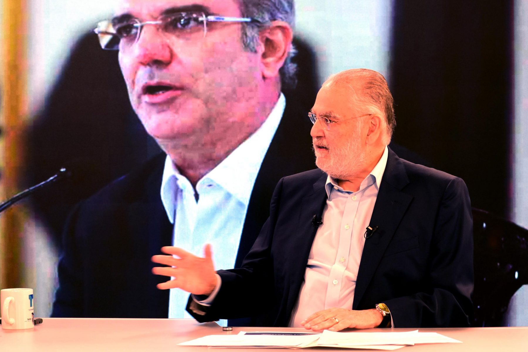 El ministro de Economía, Planificación y Desarrollo, Miguel Ceara Hatton, entrevistado por el periodista Roberto Cavada, en el segmento Hora Cero del noticiario de Telenoticias por Telesistema, canal 11.