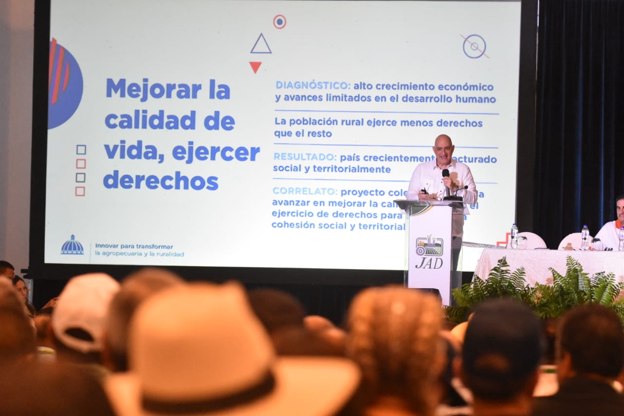 El ministro Isa Contreras disertó con la conferencia magistral “Innovar para transformar la agropecuaria y la ruralidad”, en el XXIII Encuentro Nacional de Líderes Agropecuario, celebrado por la Junta Agroempresarial Dominicana con el tema “Retomamos el Futuro: Innovación y Producción Sostenible para la Seguridad Alimentaria”.