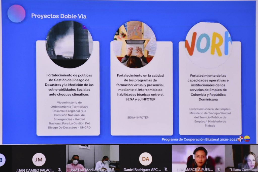 Además, se destacaron los proyectos en doble vía para ambas naciones, como son el fortalecimiento en la calidad de los programas de formación virtual y presencial mediante el intercambio de habilidades técnicas entre el SENA y el INFOTEP; fortalecimiento de las capacidades operativas e institucionales de los servicios de Empleo de Colombia y República Dominicana y fortalecimiento de Políticas de Gestión del Riesgo de Desastres e Inclusión Social en República Dominicana y Colombia.