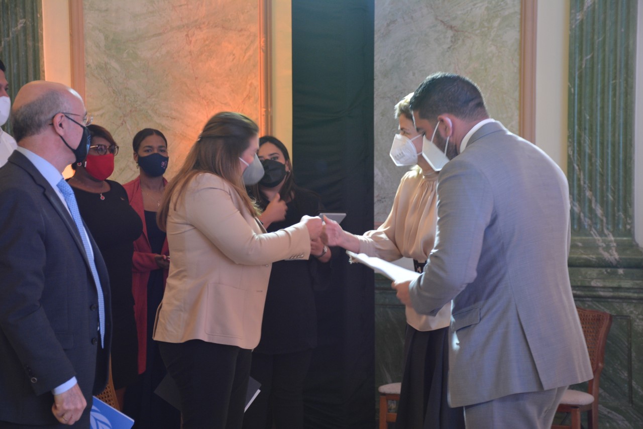 La directora del CASFL presentó el reglamento durante el acto de entrega del Premio Voluntariado Solidario 2020 auspiciado por Progresando con Solidaridad (PROSOLI), Vicepresidencia de la República, este ministerio y el Sistema de Naciones Unidas en el Palacio Nacional.
