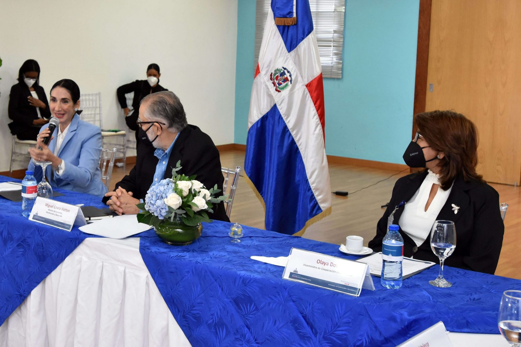 La agenda de la visita agotó un encuentro en el cual participaron los viceministros Pável Isa Contreras, de Planificación e Inversión Pública; Yamel Valera, Administrativo Financiero, y Domingo Matías, de Ordenamiento Territorial; también, la viceministra de Cooperación Internacional, Olaya Dotel; el director de gabinete, Ranulfo Rodríguez, y el director de la Unidad Asesora de Análisis Económico y Social, Alexis Cruz. Estuvieron presentes directores y directoras vinculados al área social y económica.