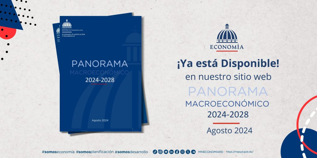 Los pronósticos están contenidos en el informe “Panorama macroeconómico 2024-2028”, actualizado a agosto de 2024 por el Viceministerio de Análisis Económico y Social. Este documento constituye un esfuerzo por los equipos del Ministerio de Economía, Planificación y Desarrollo, el Banco Central de la República Dominicana (BCRD) y el Ministerio de Hacienda de dotar a los tomadores de decisiones de proyecciones actualizadas para la planificación económica de mediano plazo.