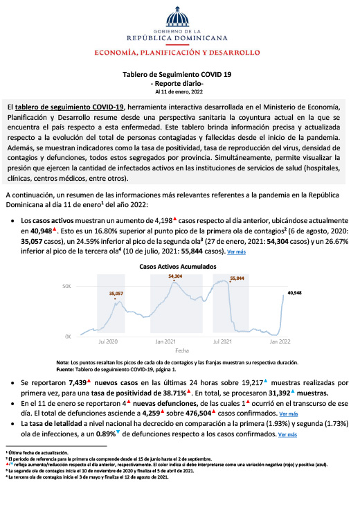Tablero de Seguimiento COVID 19 – Reporte diario – Al 25 de enero del 2022