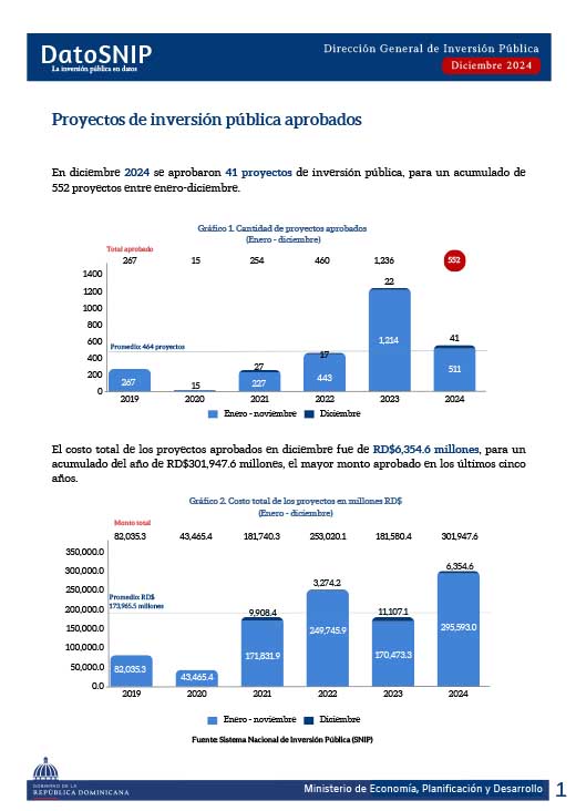 Resumen En diciembre 2024 se aprobaron 41 proyectos de inversión pública, para un acumulado de 552 proyectos entre enero-diciembre. Descargar documento (PDF)
