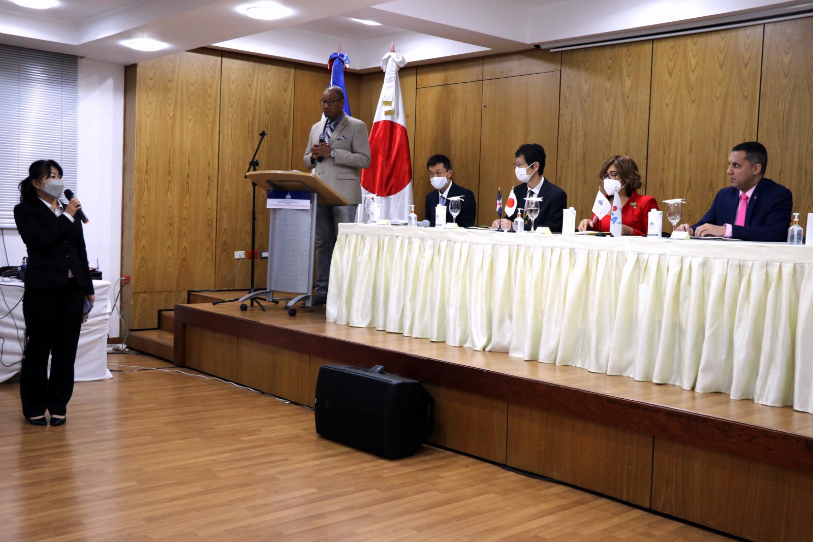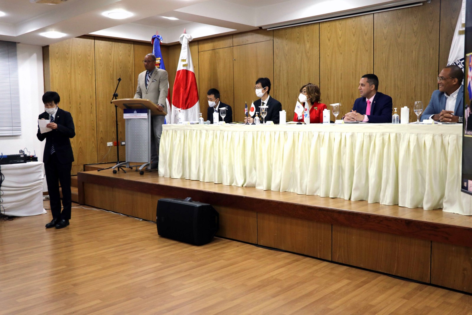 El acto de entrega estuvo encabezado por la viceministra de Cooperación Internacional del Ministerio de Economía, Olaya Dotel; el director de Cooperación Internacional del Viceministerio para Asuntos Económicos y Cooperación Internacional del Ministerio de Relaciones Exteriores (MIREX), José Luis Morillo; el embajador del Japón en la República Dominicana, Takagi Masahiro; el representante residente adjunto de la JICA, Sasaki Kenta; y Adrián Puello, director de Investigación y Gestión del Conocimiento del Instituto del Cáncer Rosa Emilia Sánchez Pérez de Tavares (INCART).