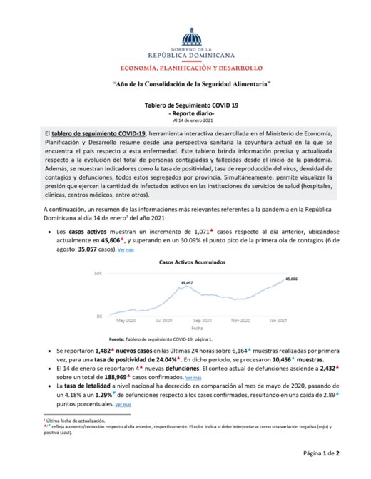 Tablero de Seguimiento COVID 19 – Reporte diario – Al 17 de enero 2021
