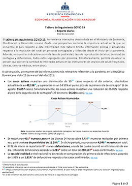 Tablero de Seguimiento COVID 19 – Reporte diario – Al 21 de marzo 2021