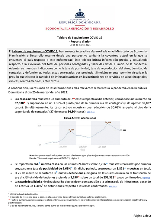 Tablero de Seguimiento COVID 19 – Reporte diario – Al 25 de marzo 2021