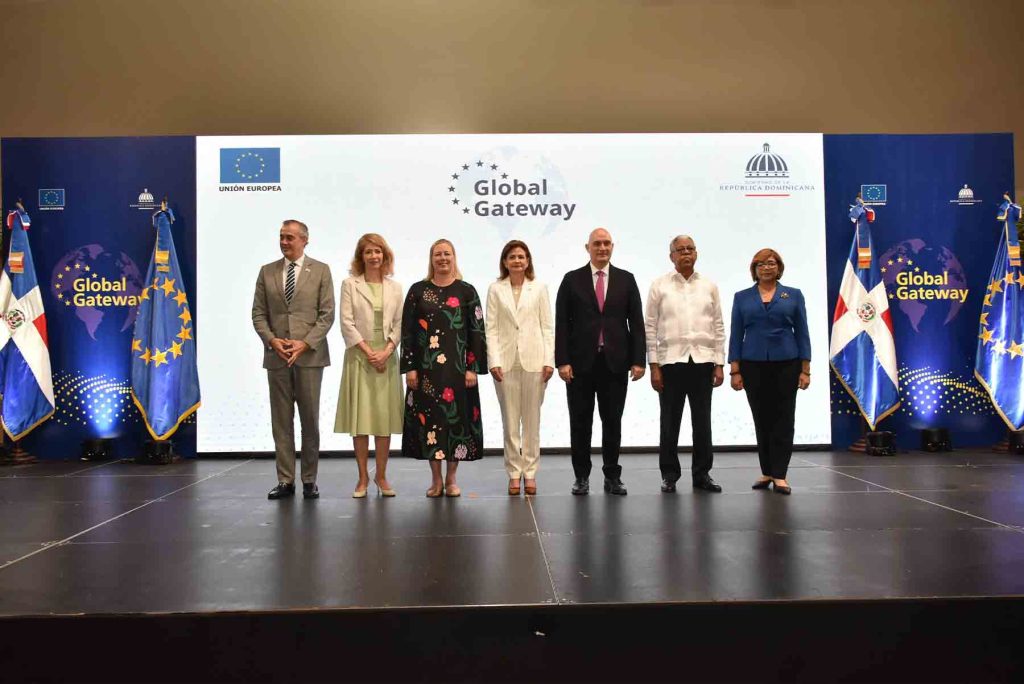 Santo Domingo, República Dominicana (29 de Mayo de 2024). El gobierno dominicano y la Unión Europea presentaron la estrategia Global Gateway para promover en el país las inversiones inteligentes en áreas prioritarias como el transporte sostenible, la transición digital y el agua y saneamiento.